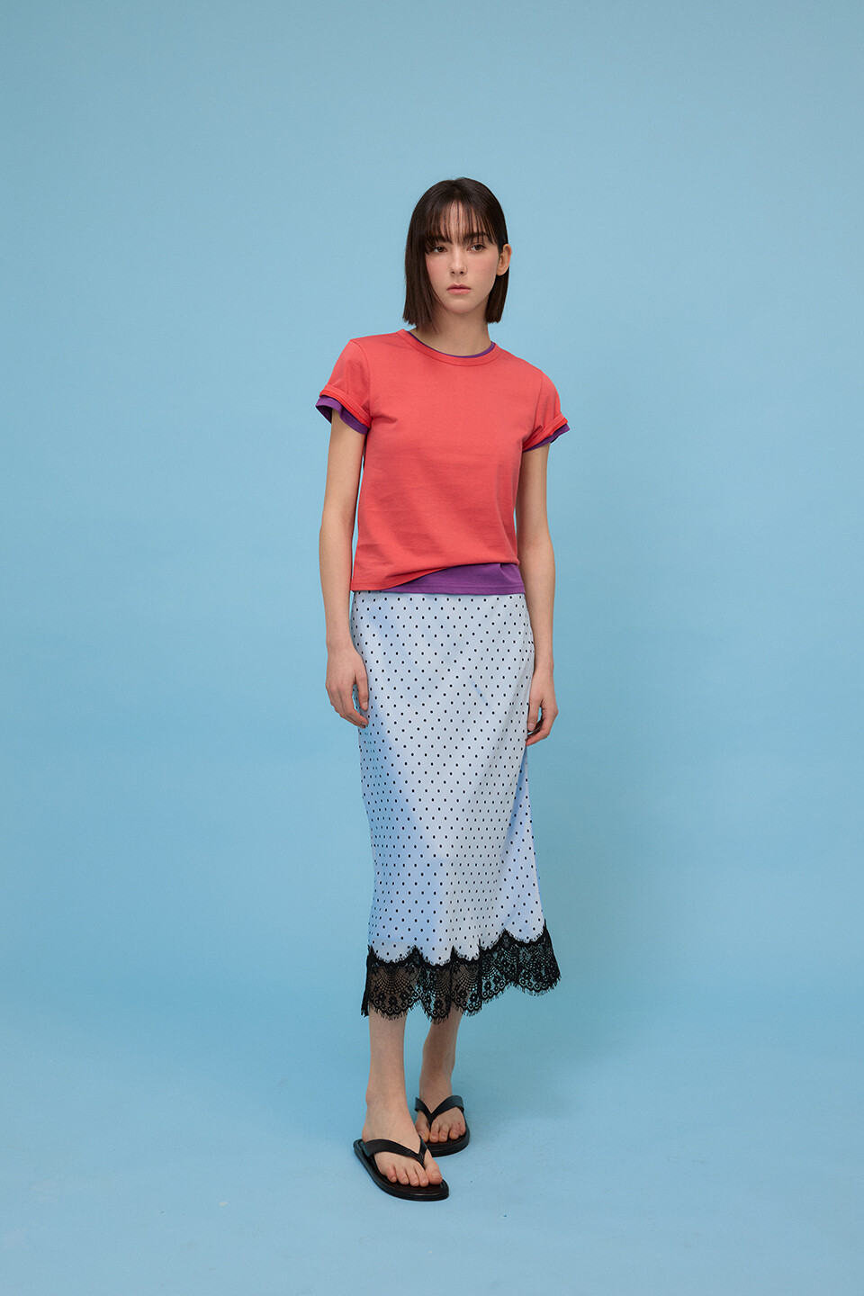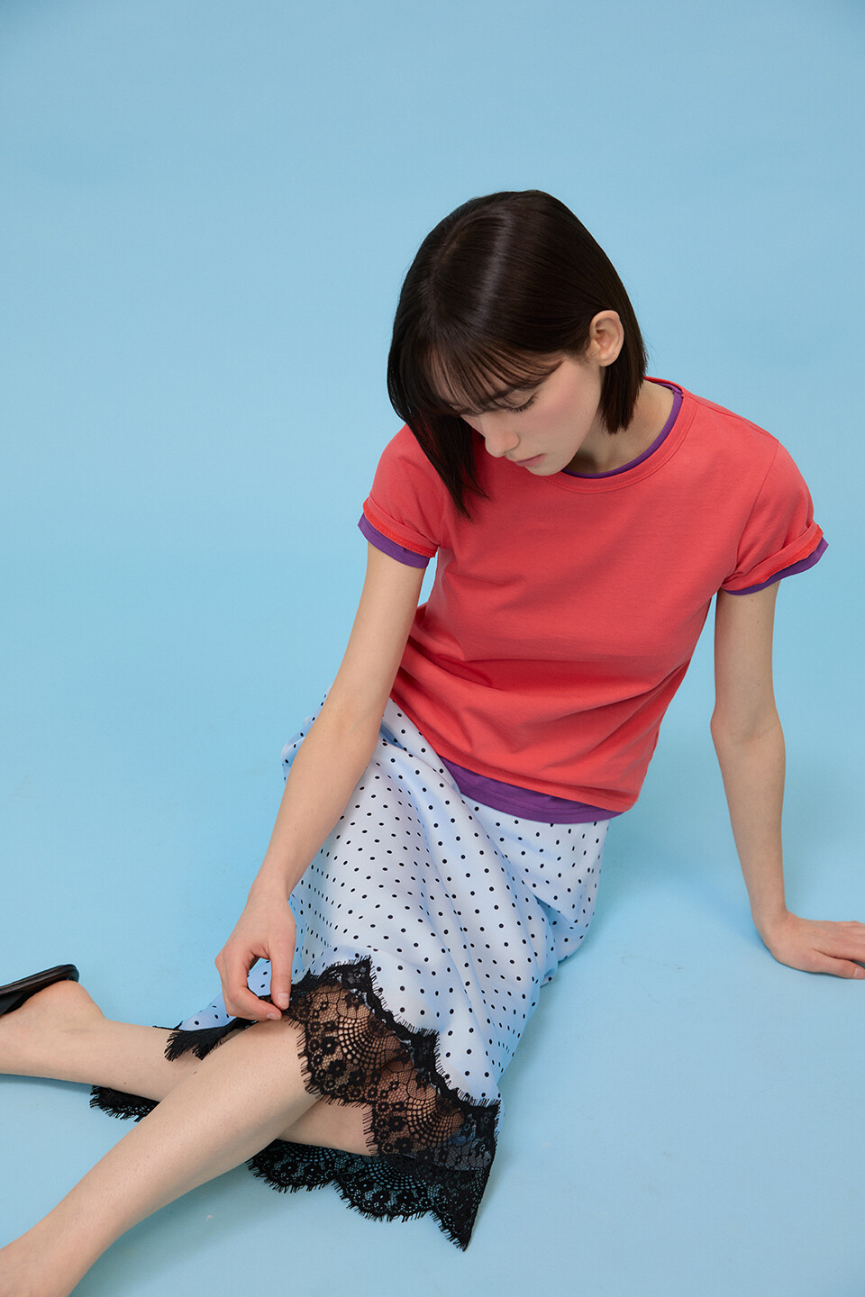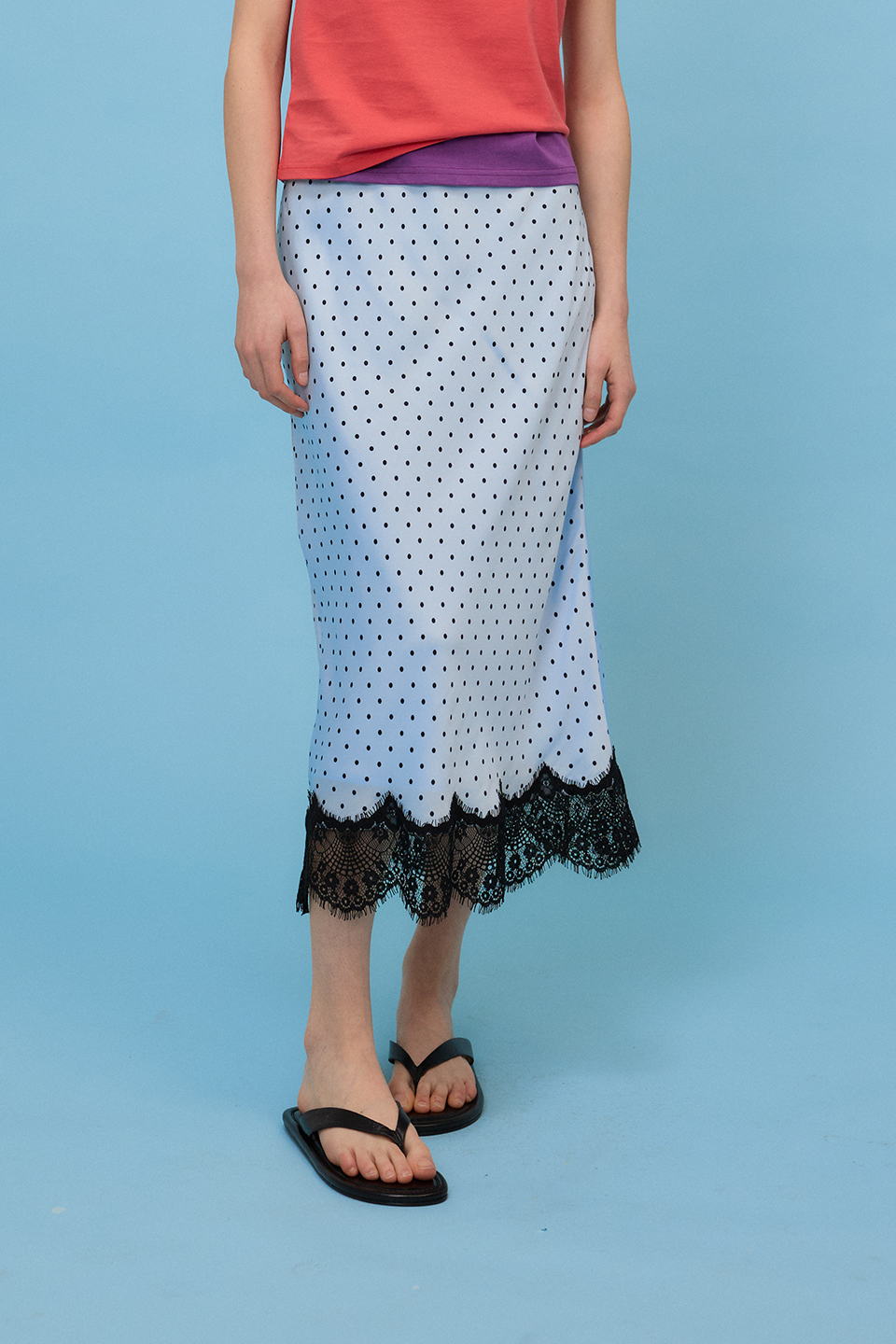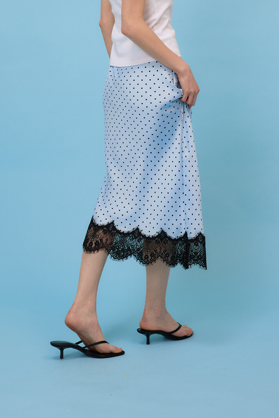 [예약배송4/17] Dotted Satin Lace Skirt - Sky Blue