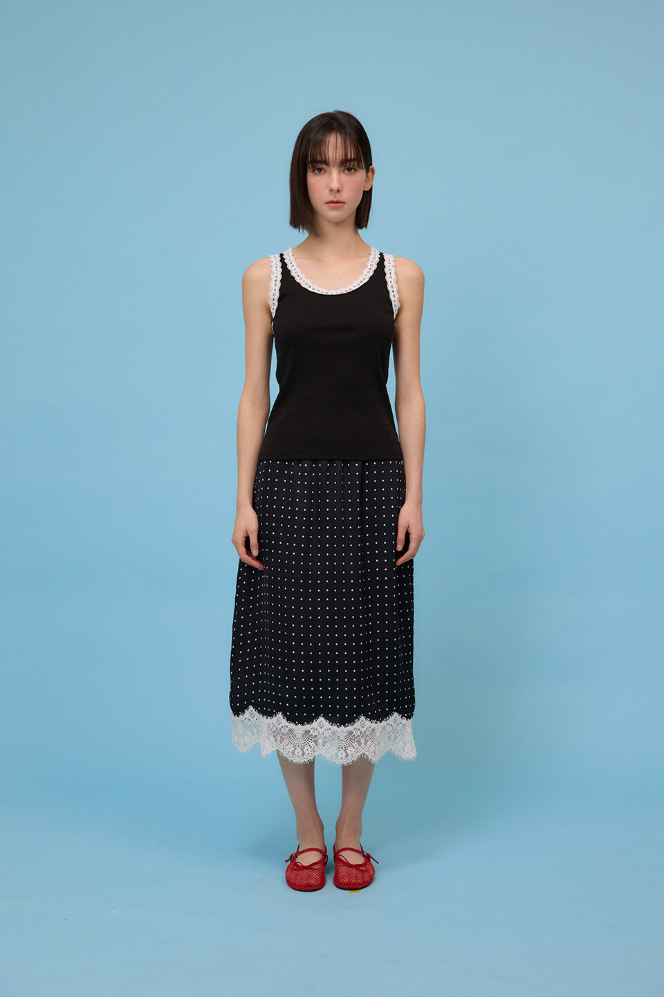 [예약배송4/17] Dotted Satin Lace Skirt - Dark Navy