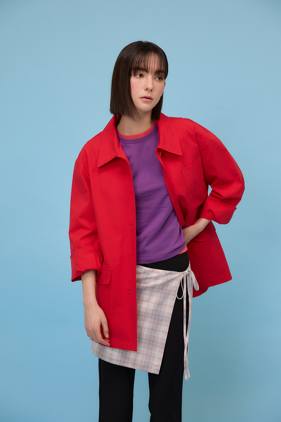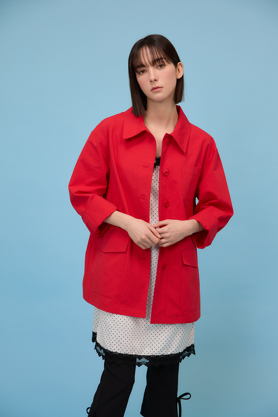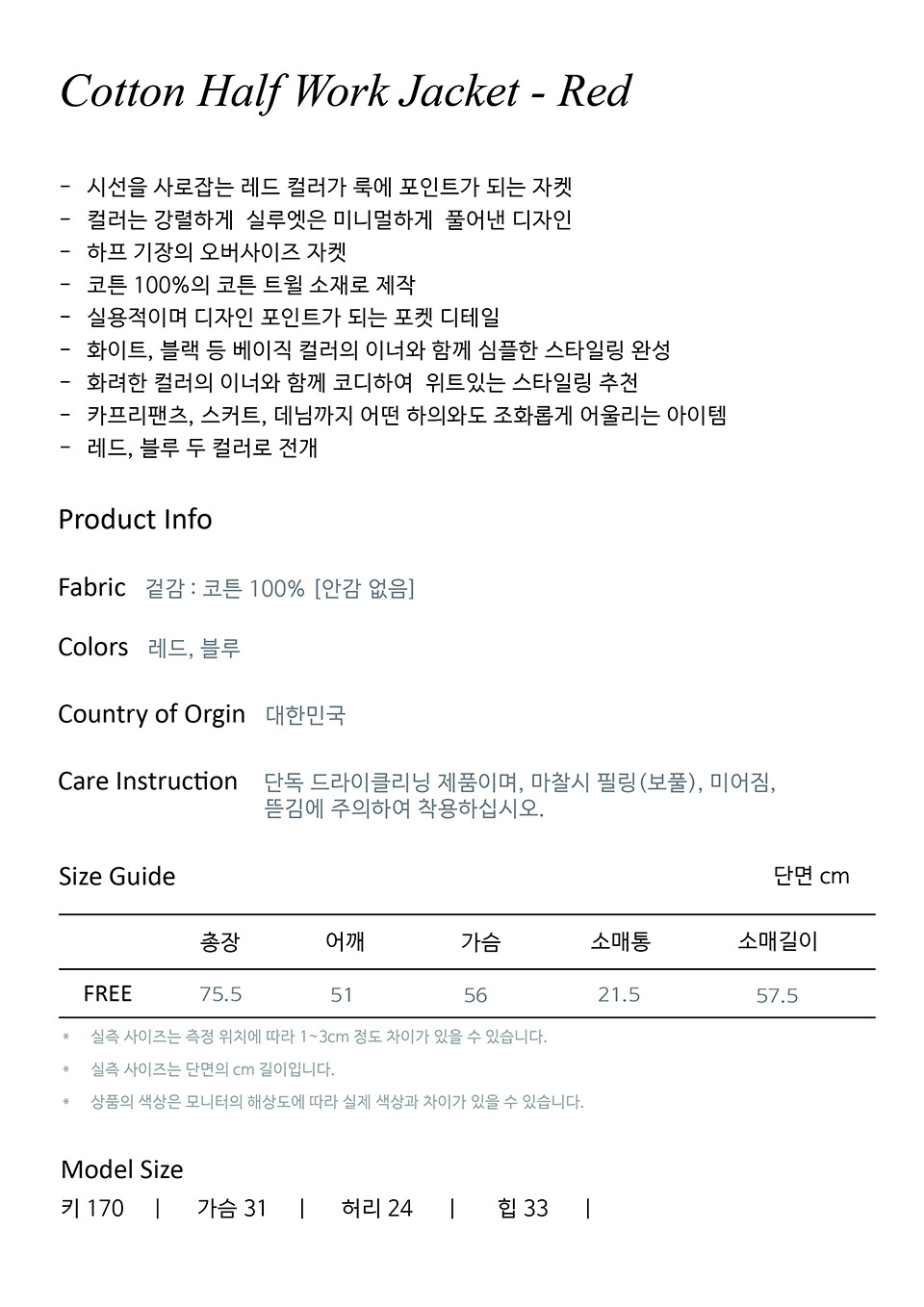 [예약배송4/14] Cotton Half Work Jacket - Red