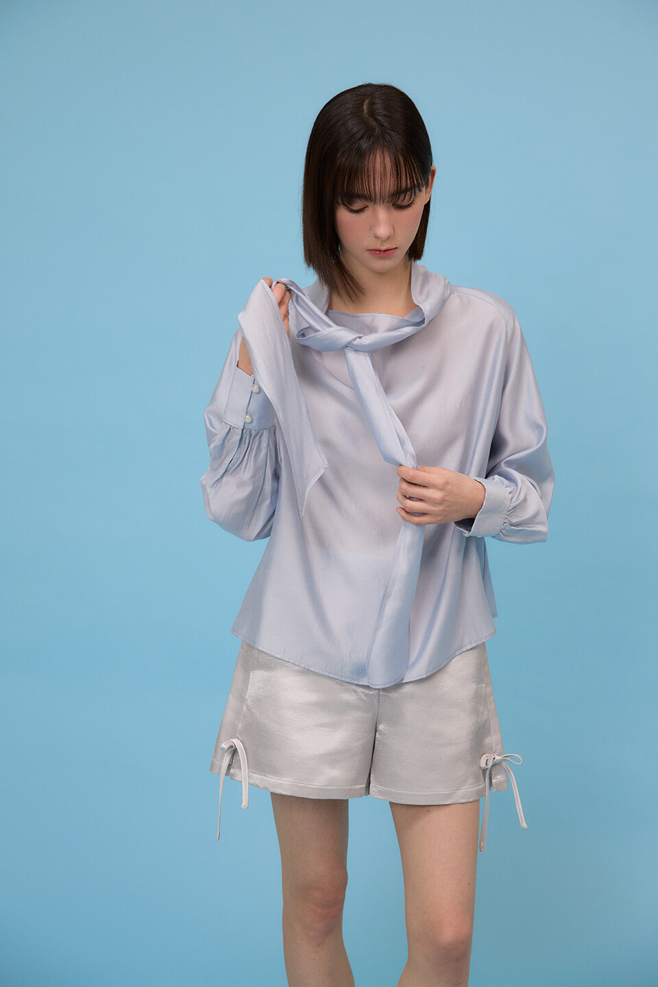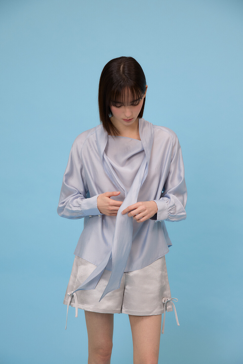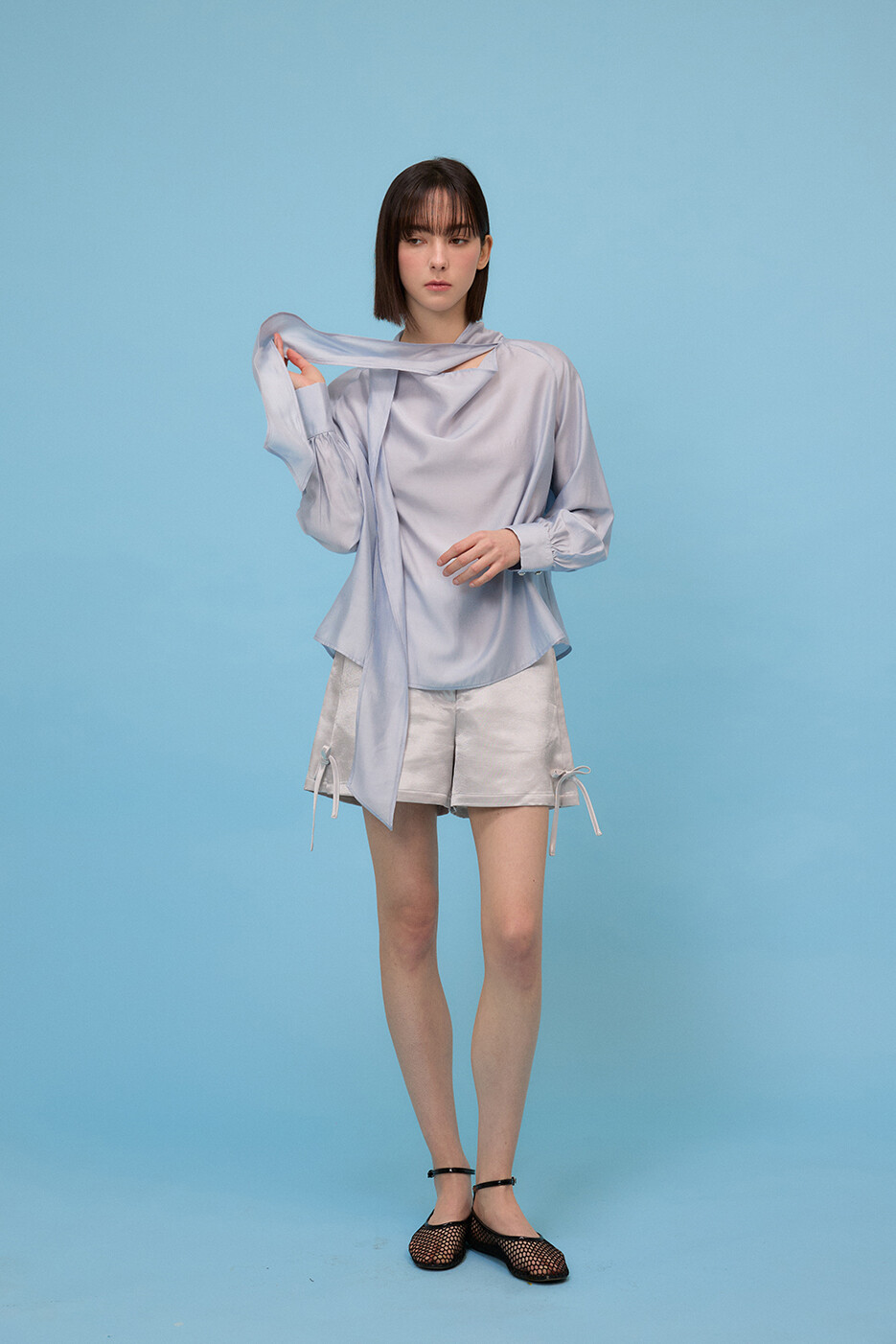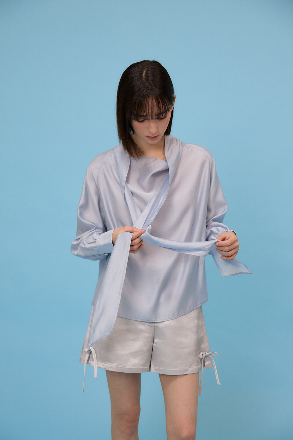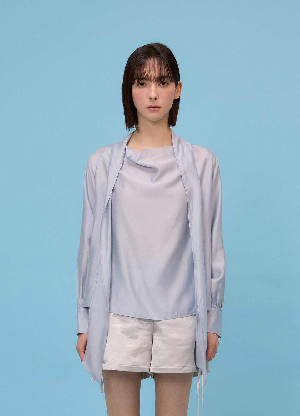 [예약배송4/15] Scarf Tie Drape Blouse - Dusty Blue