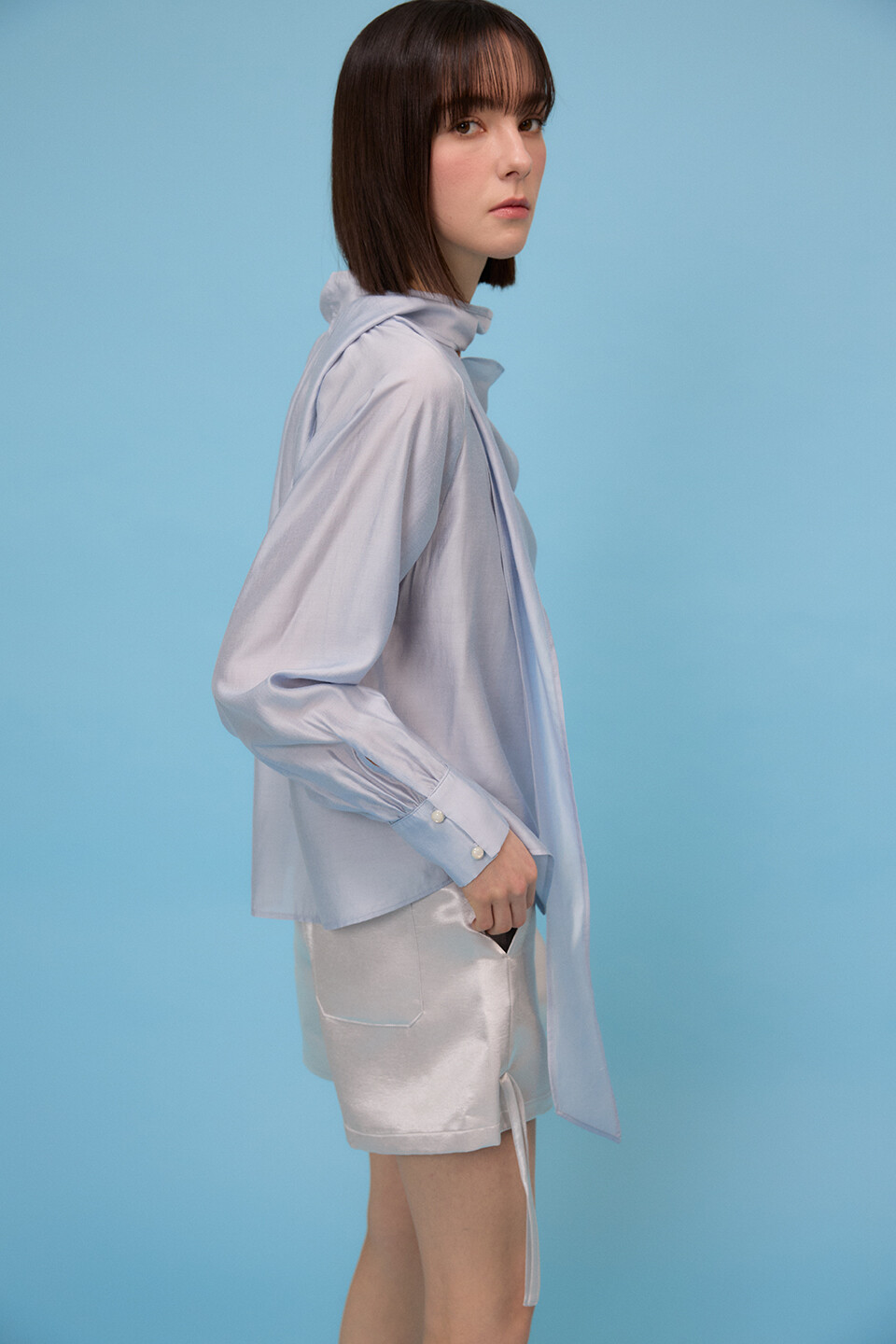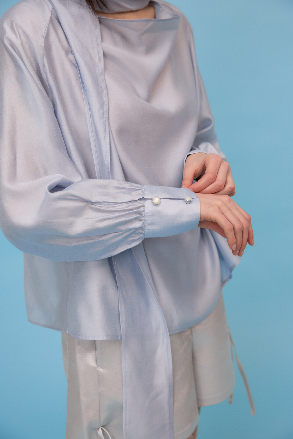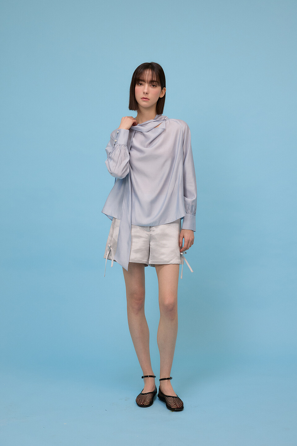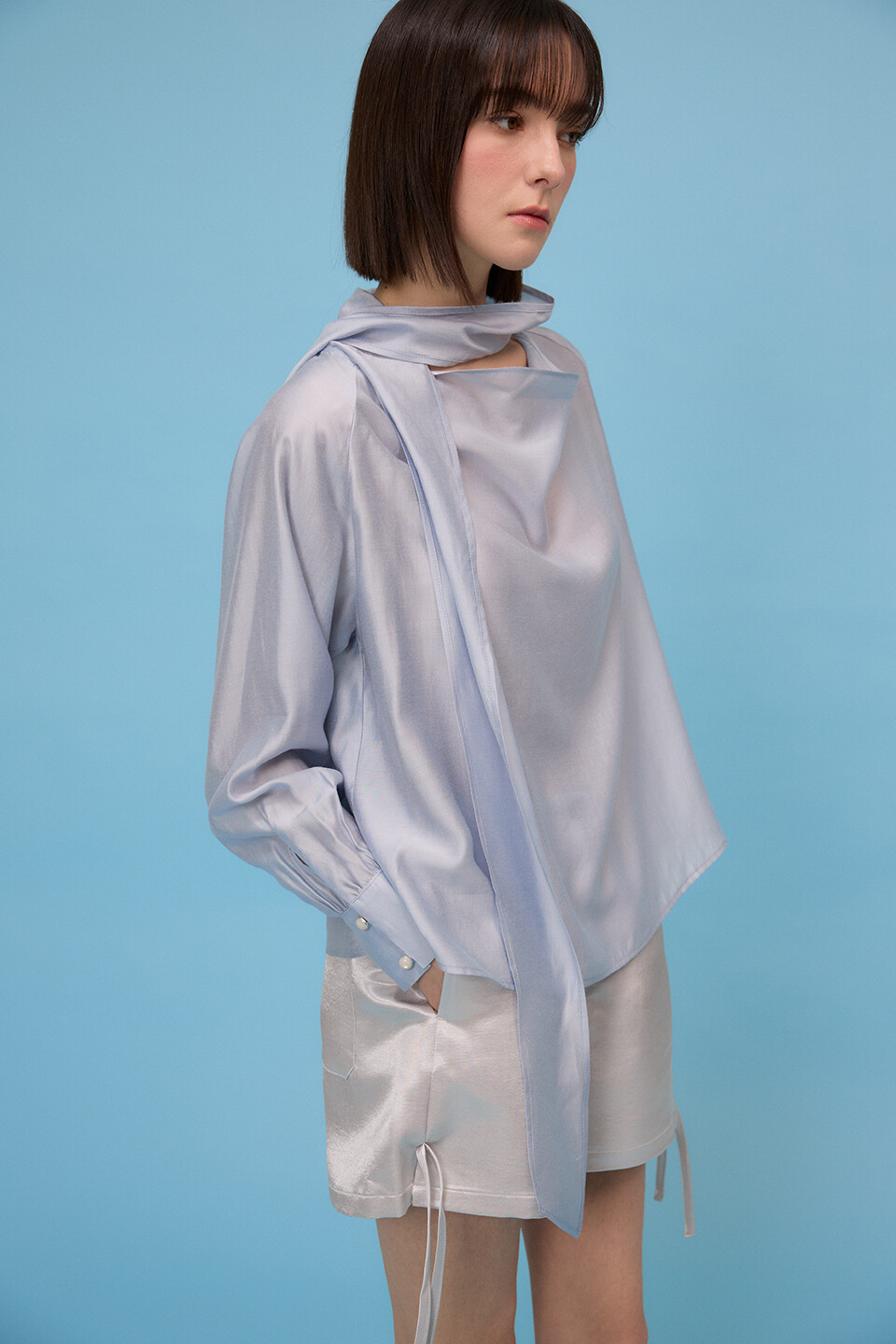 [예약배송4/15] Scarf Tie Drape Blouse - Dusty Blue