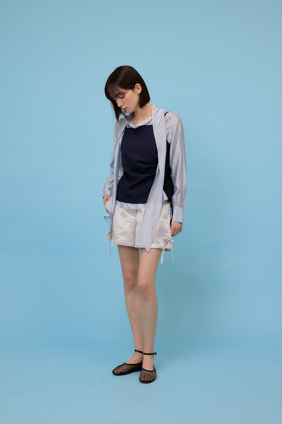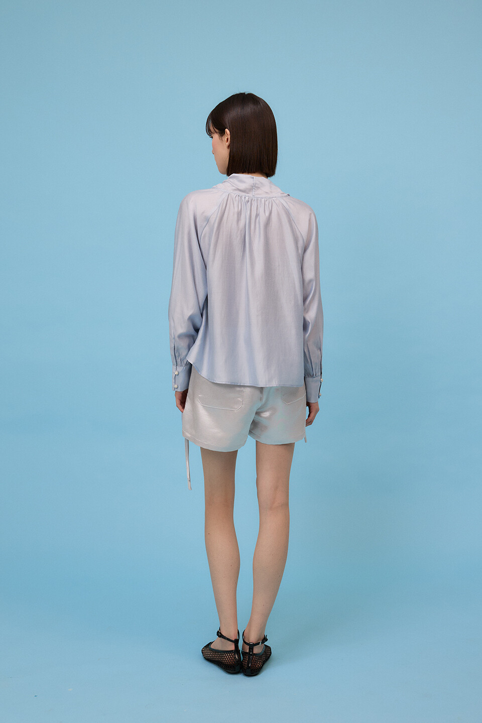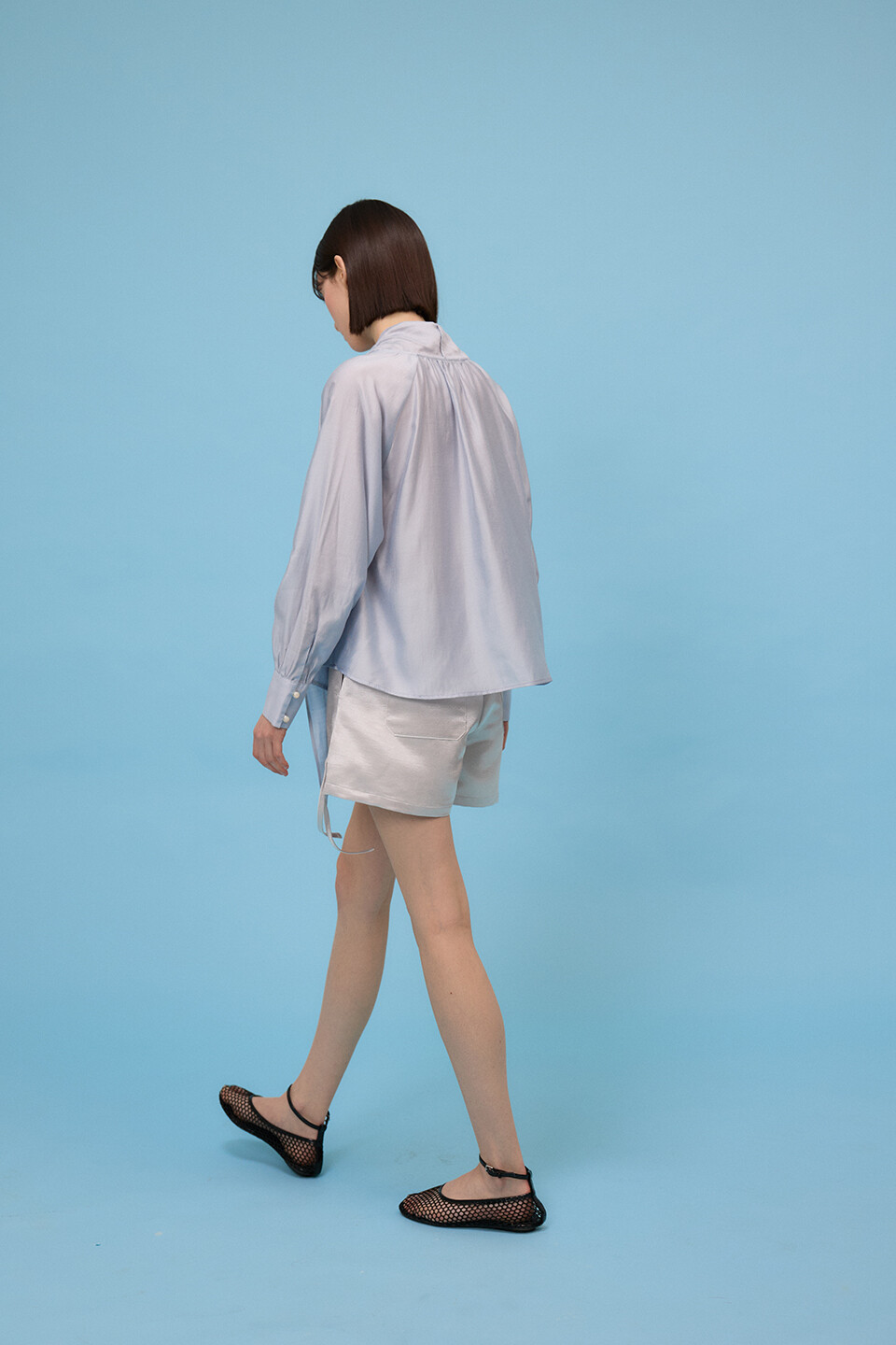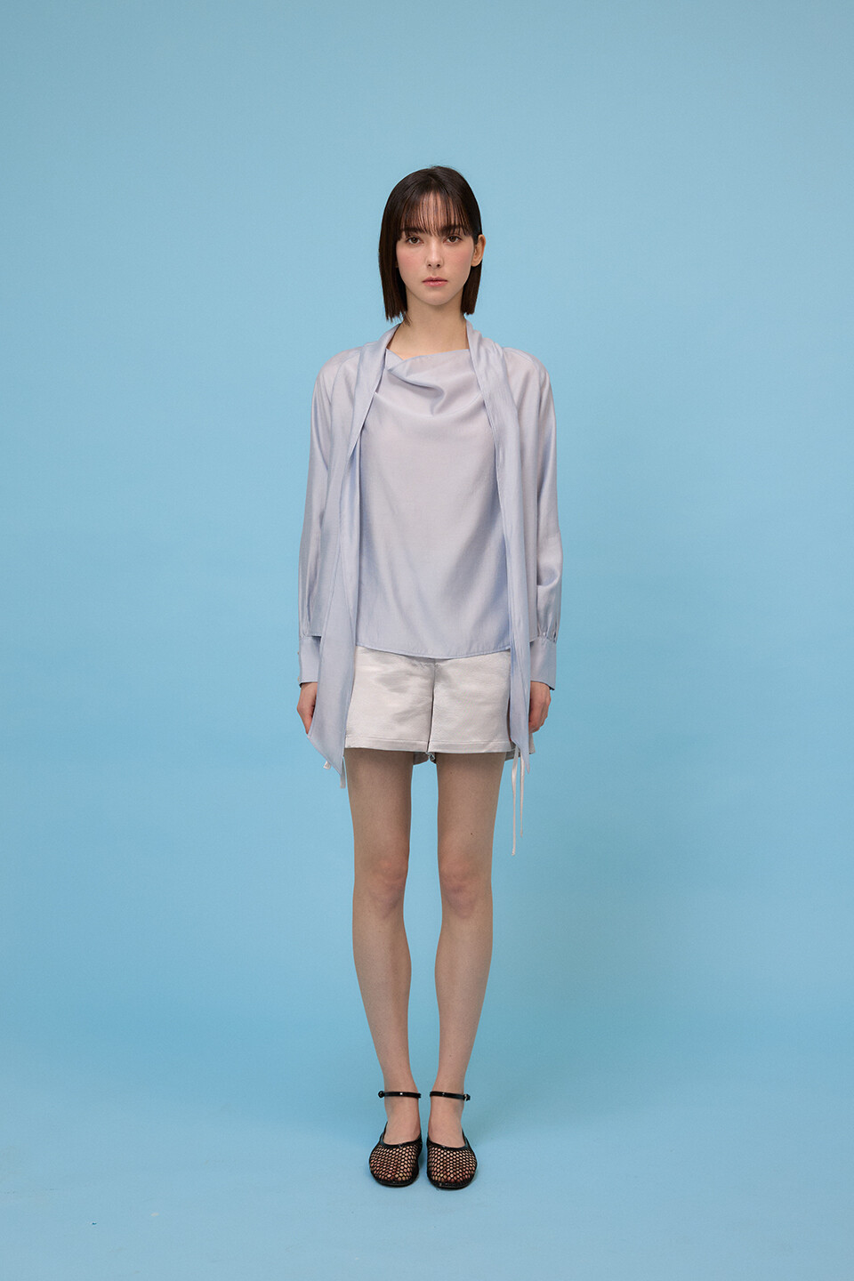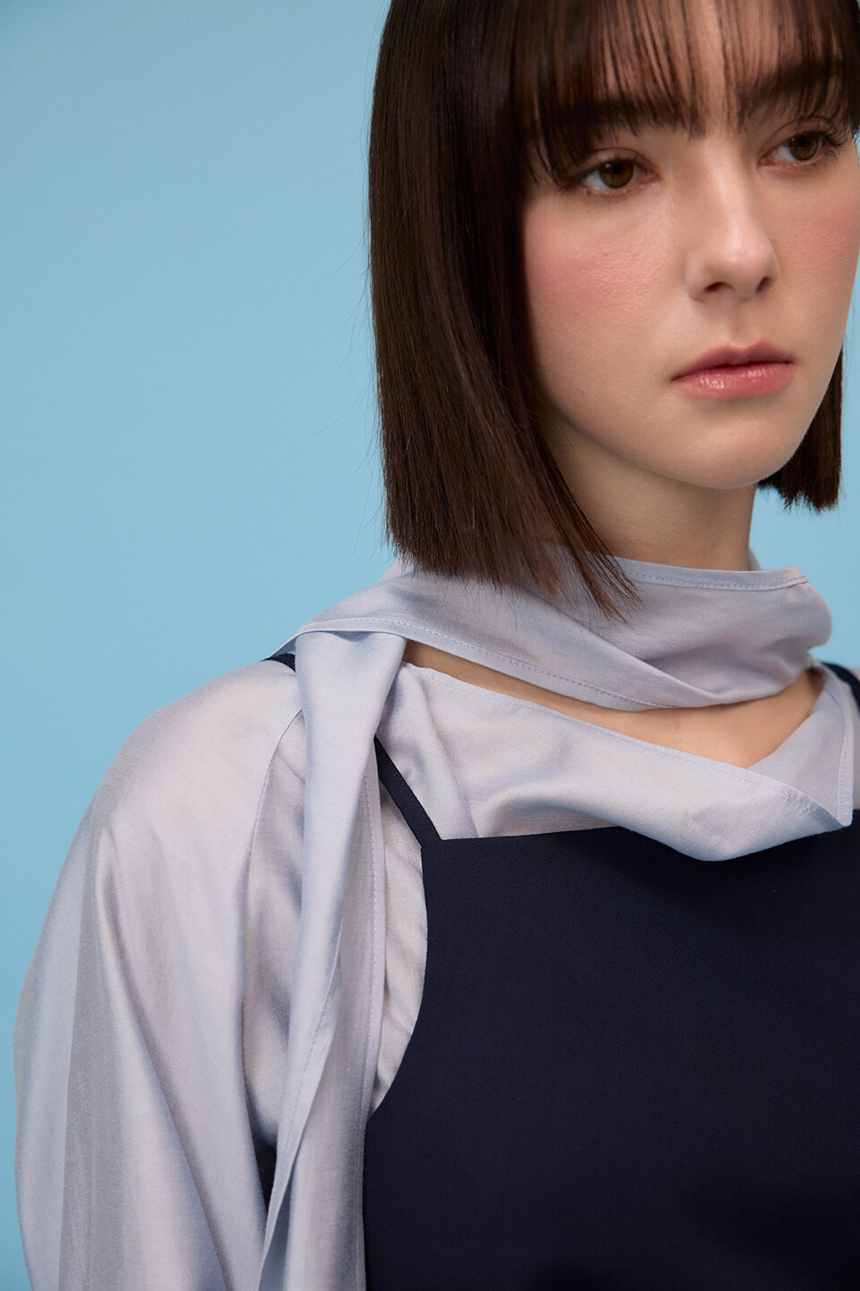 [예약배송4/15] Scarf Tie Drape Blouse - Dusty Blue