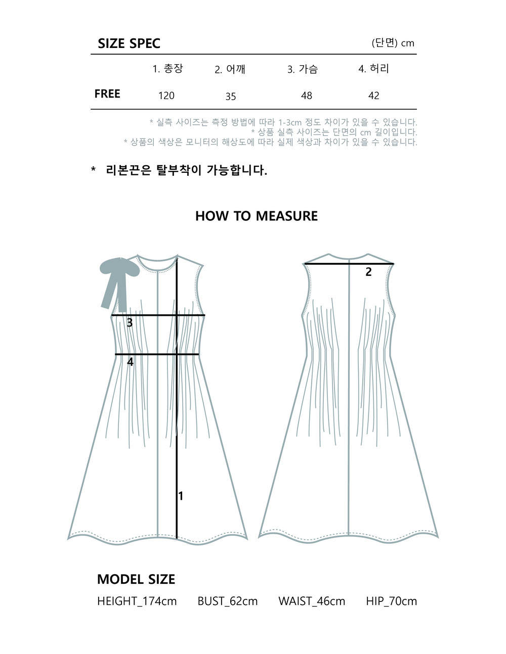 - 사이즈는 측정 방법에 따라 1-3cm 정도 차이가 날 수 있으며, 체형에 따라 핏이 다를 수 있습니다.