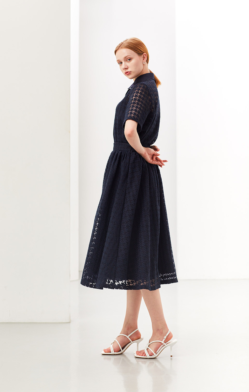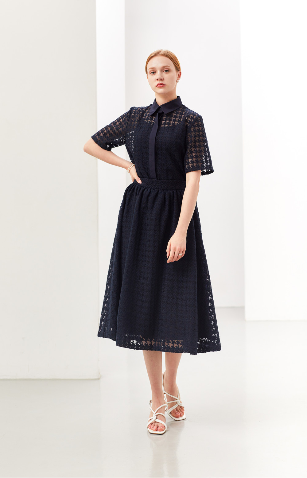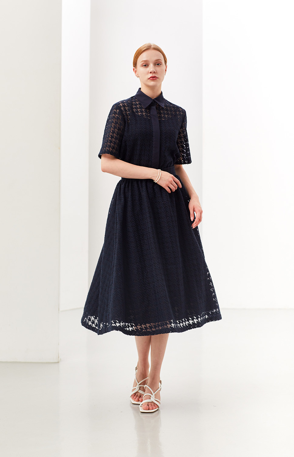 - 하운드투스 패턴의 자수가 놓여진 고급스러운 오간자 소재