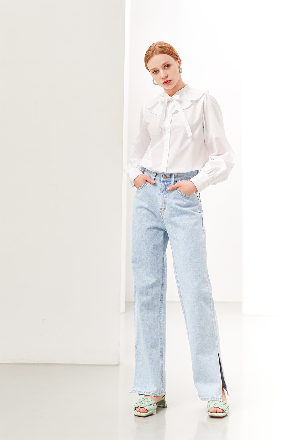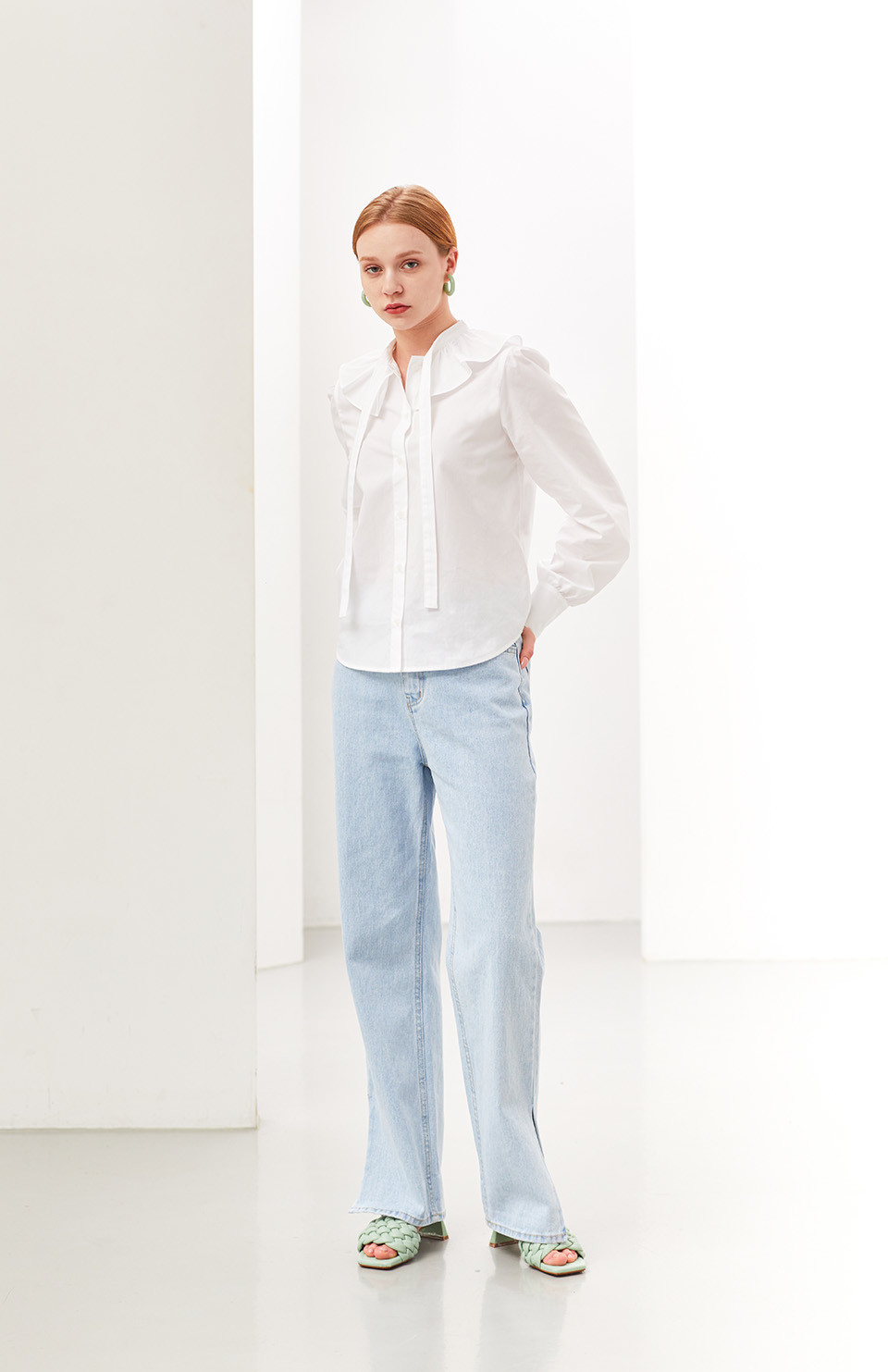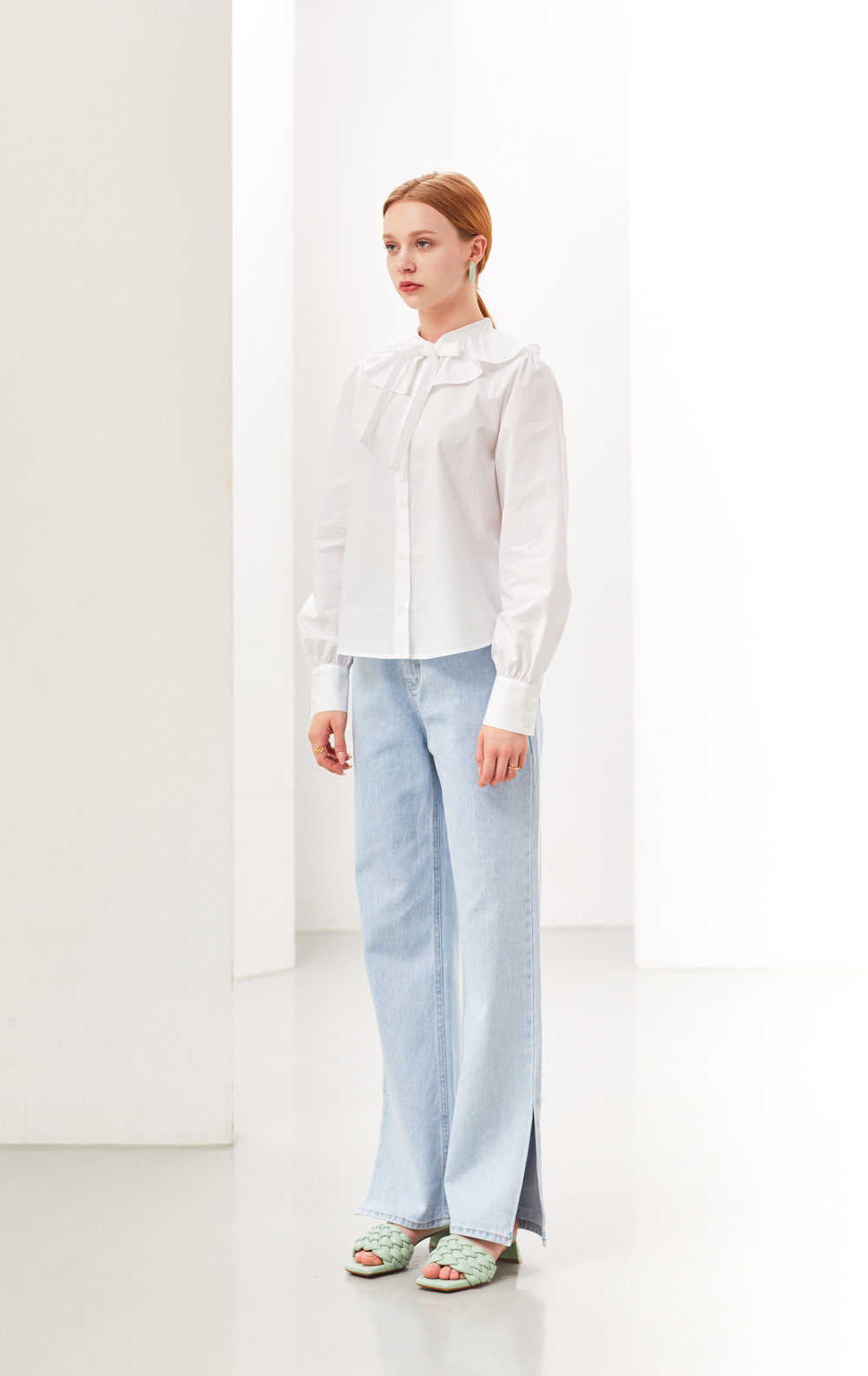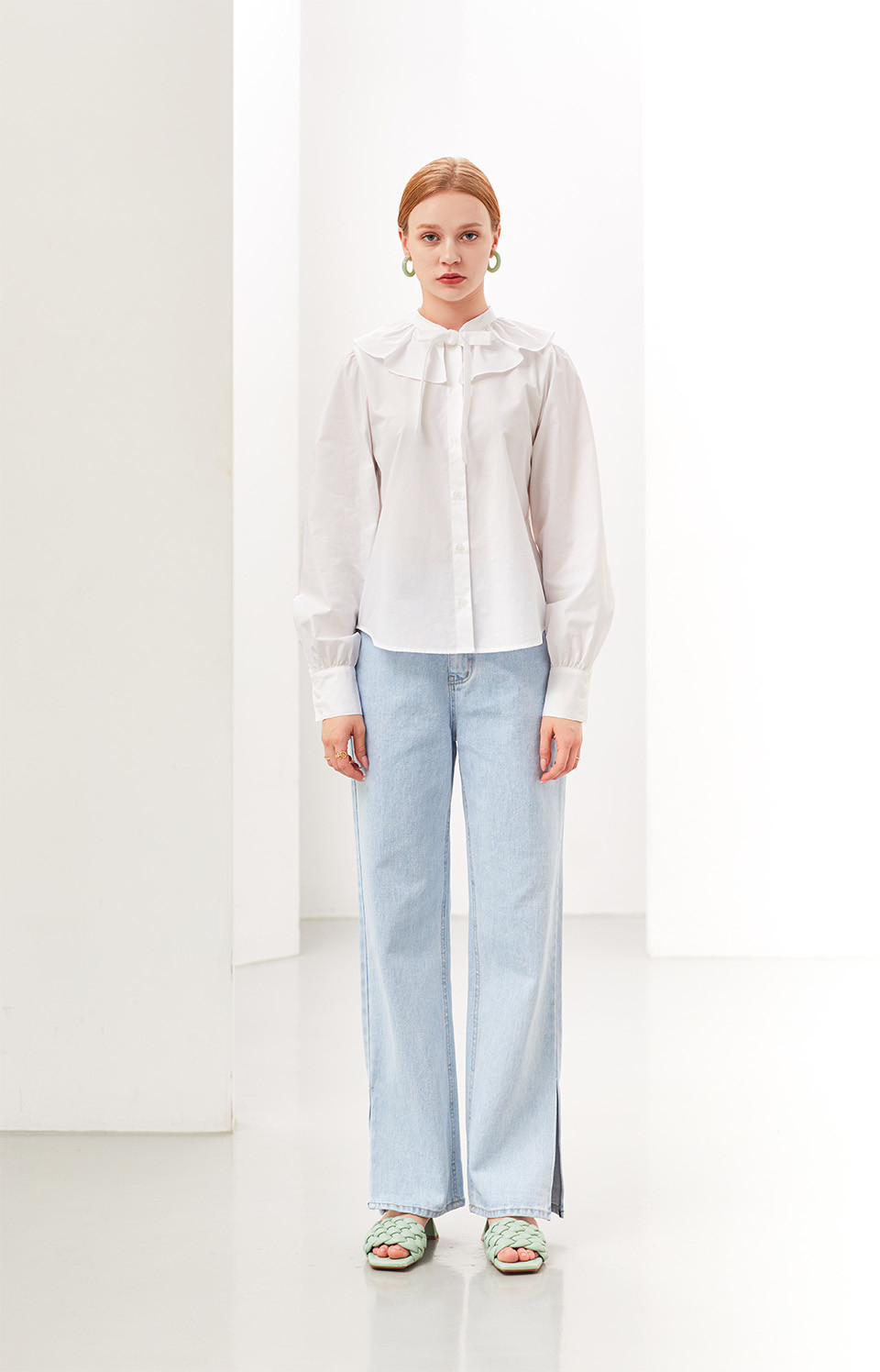 - 넥라인을 따라 자연스러운 프릴이 형성되어 발랄한 느낌