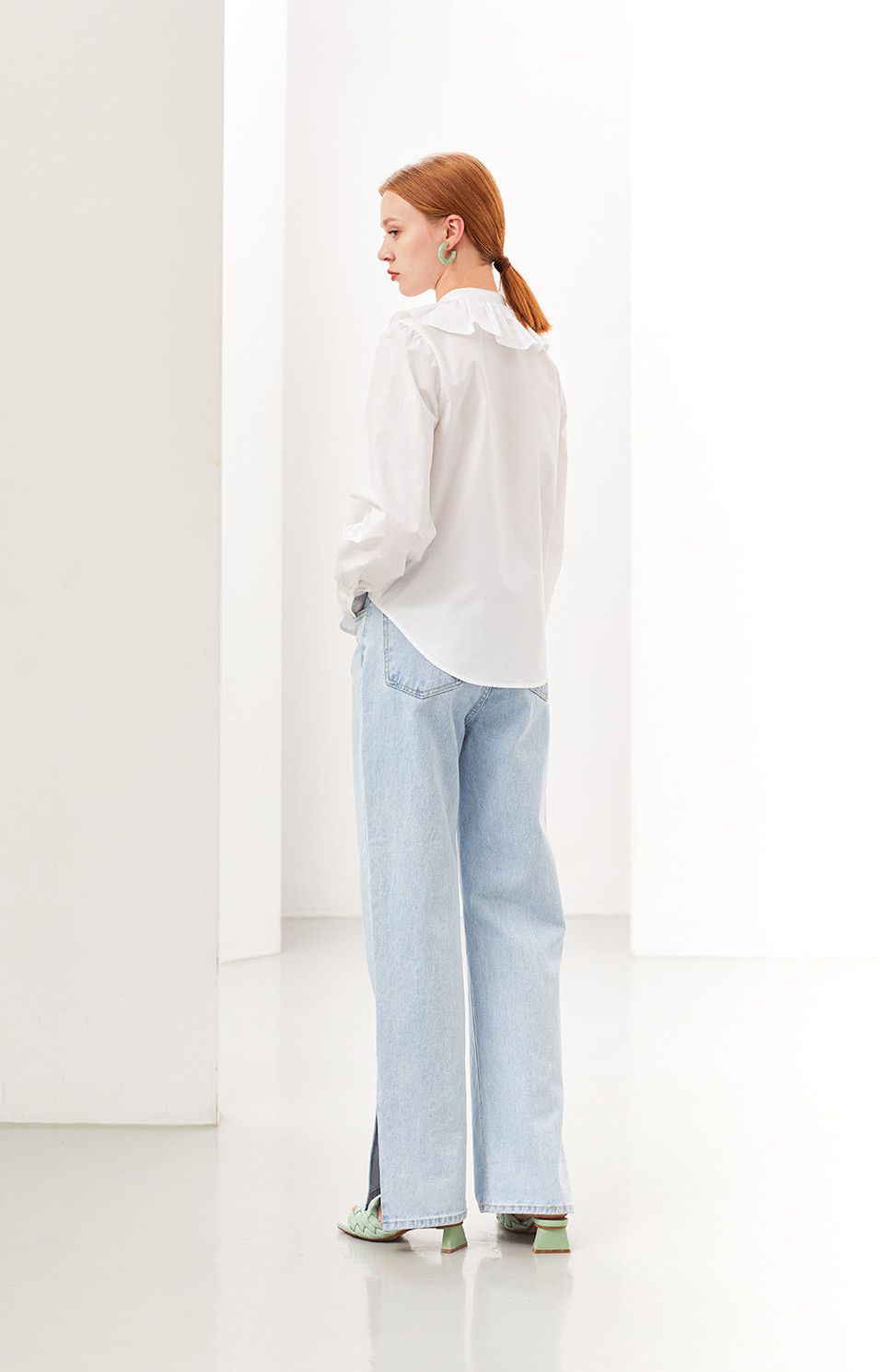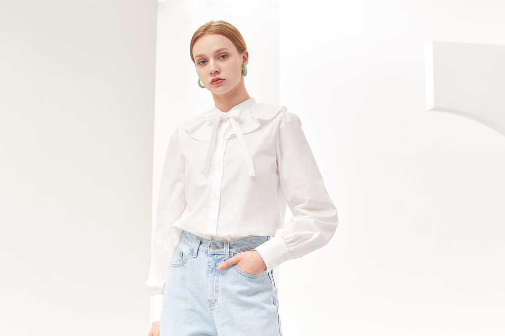 - 아우터나 가디건 안에 레이어드하여 프릴 카라로 포인트를 주는 스타일링 추천