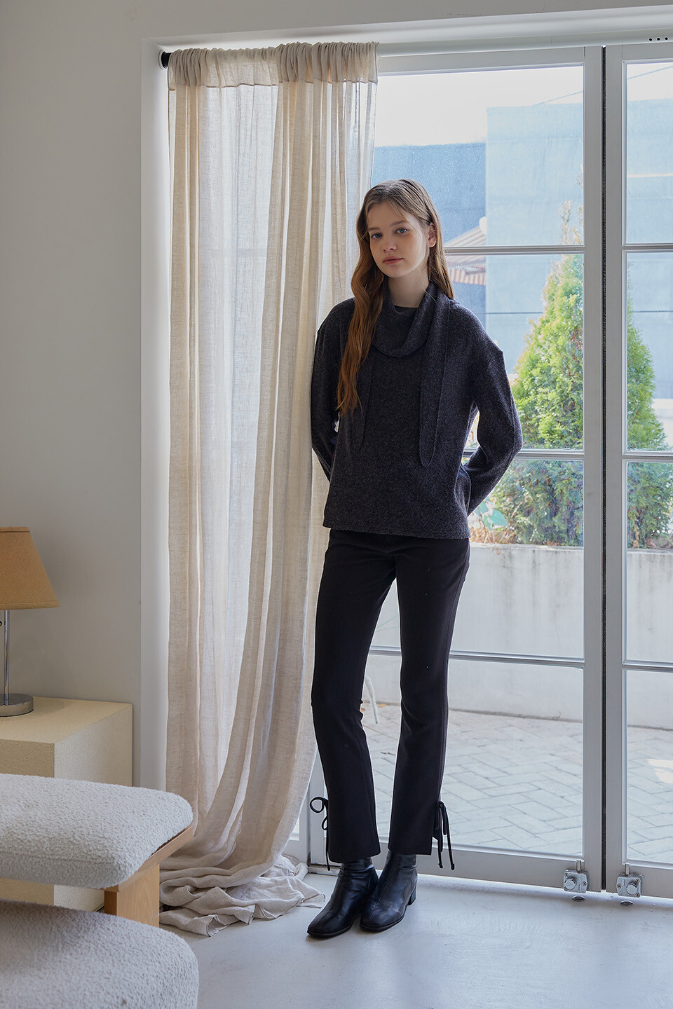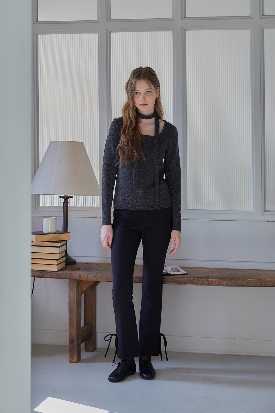 Ribbon Tie Semi Bootcut Pant