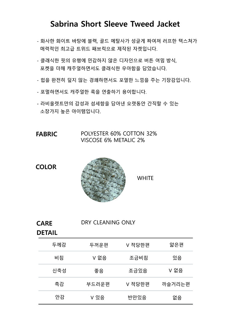 [리오더] Sabrina Short Sleeve Tweed Jacket