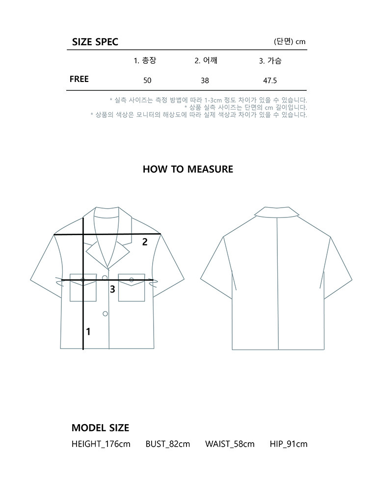 - 사이즈는 측정 방법에 따라 1-3cm 정도 차이가 날 수 있으며, 체형에 따라 핏이 다를 수 있습니다.