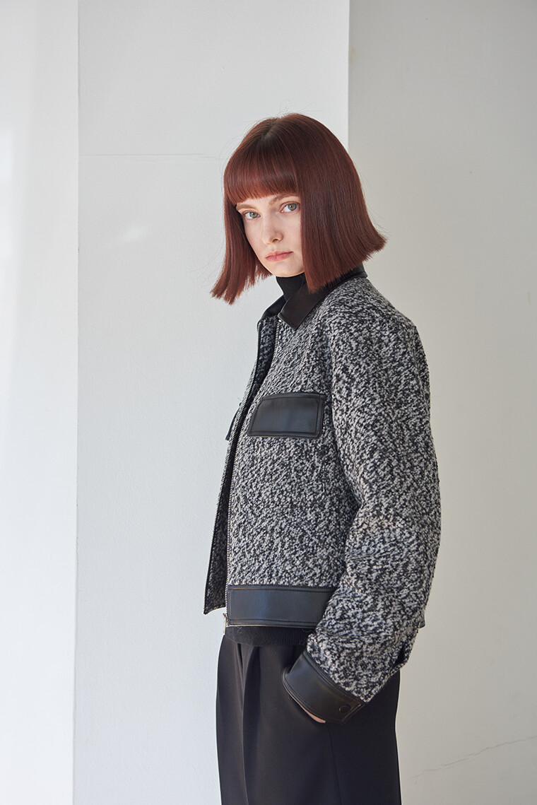 Leather Combi Jacket - Light Grey/Black