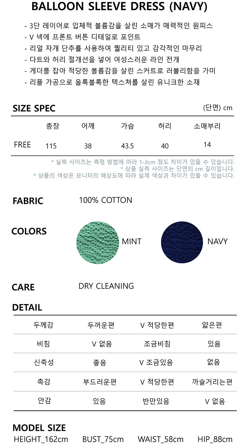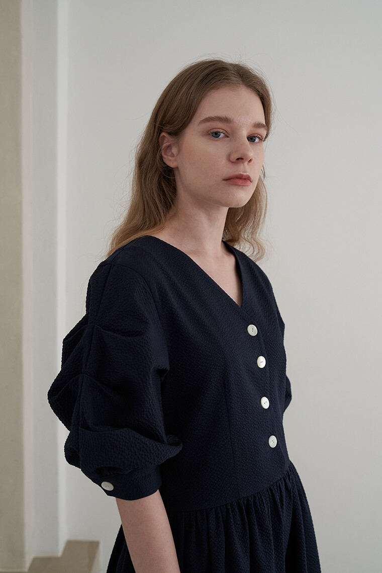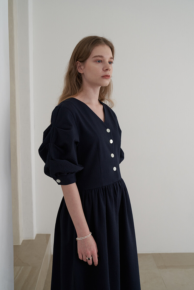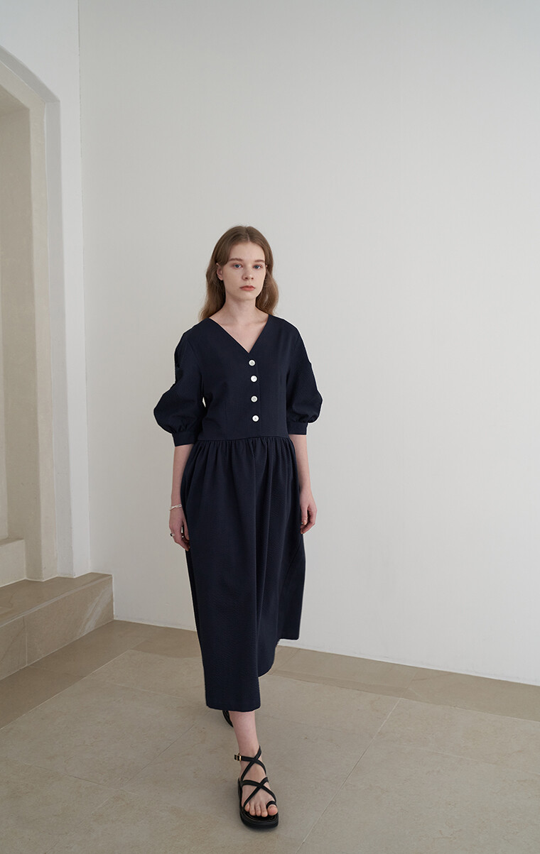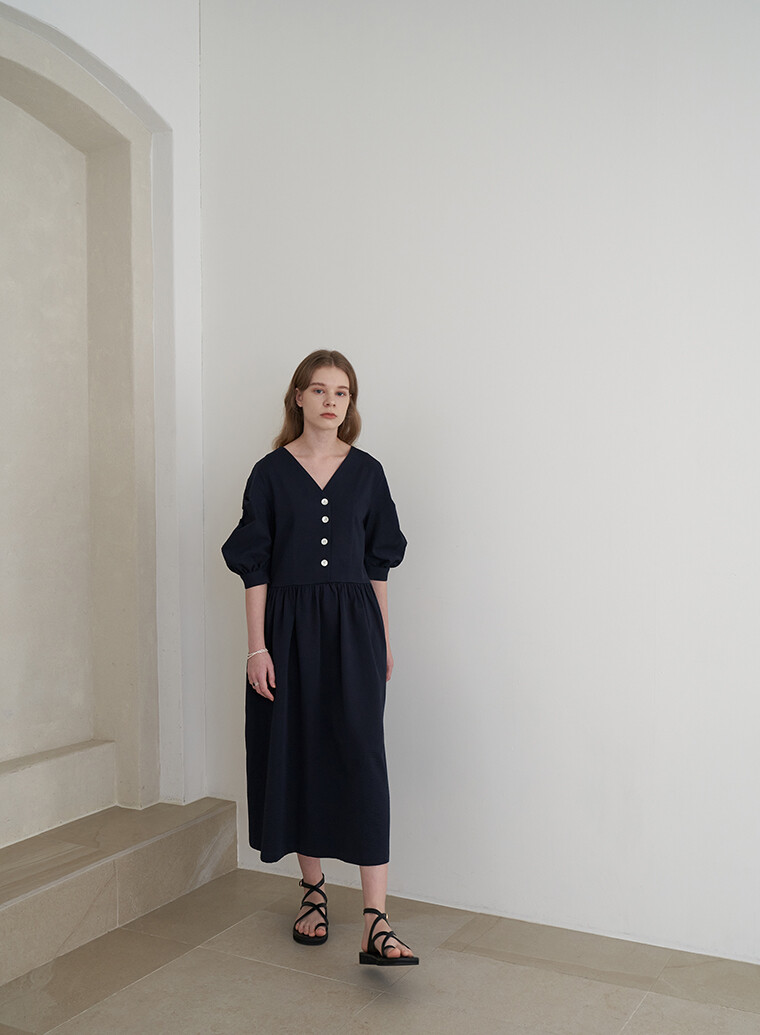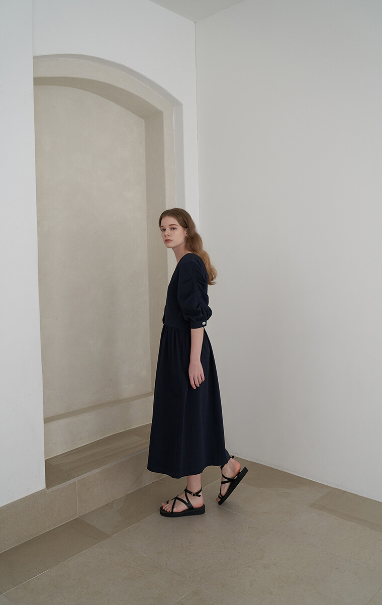[2차 리오더] Ballon Sleeve Dress (Navy)