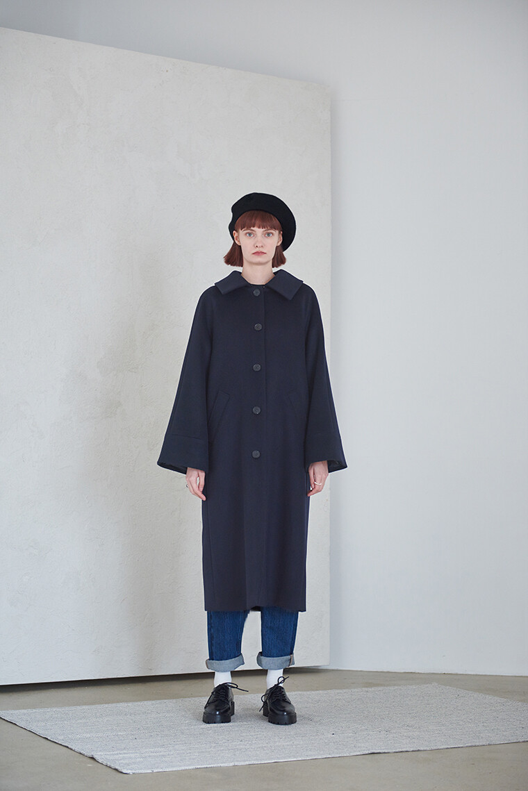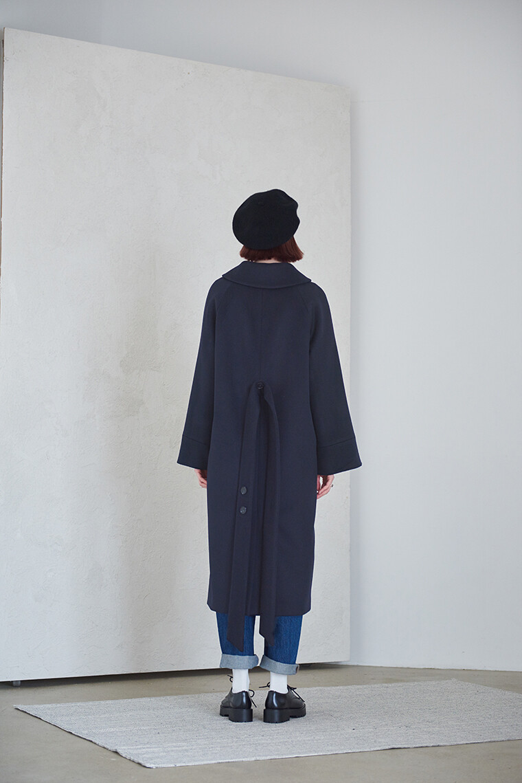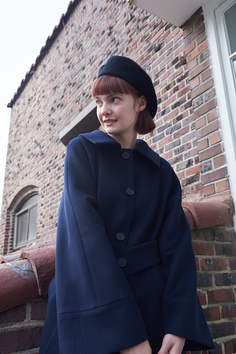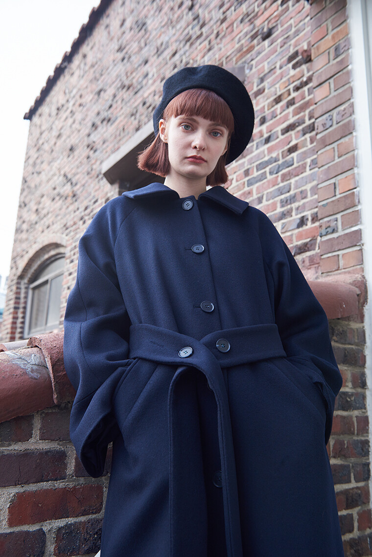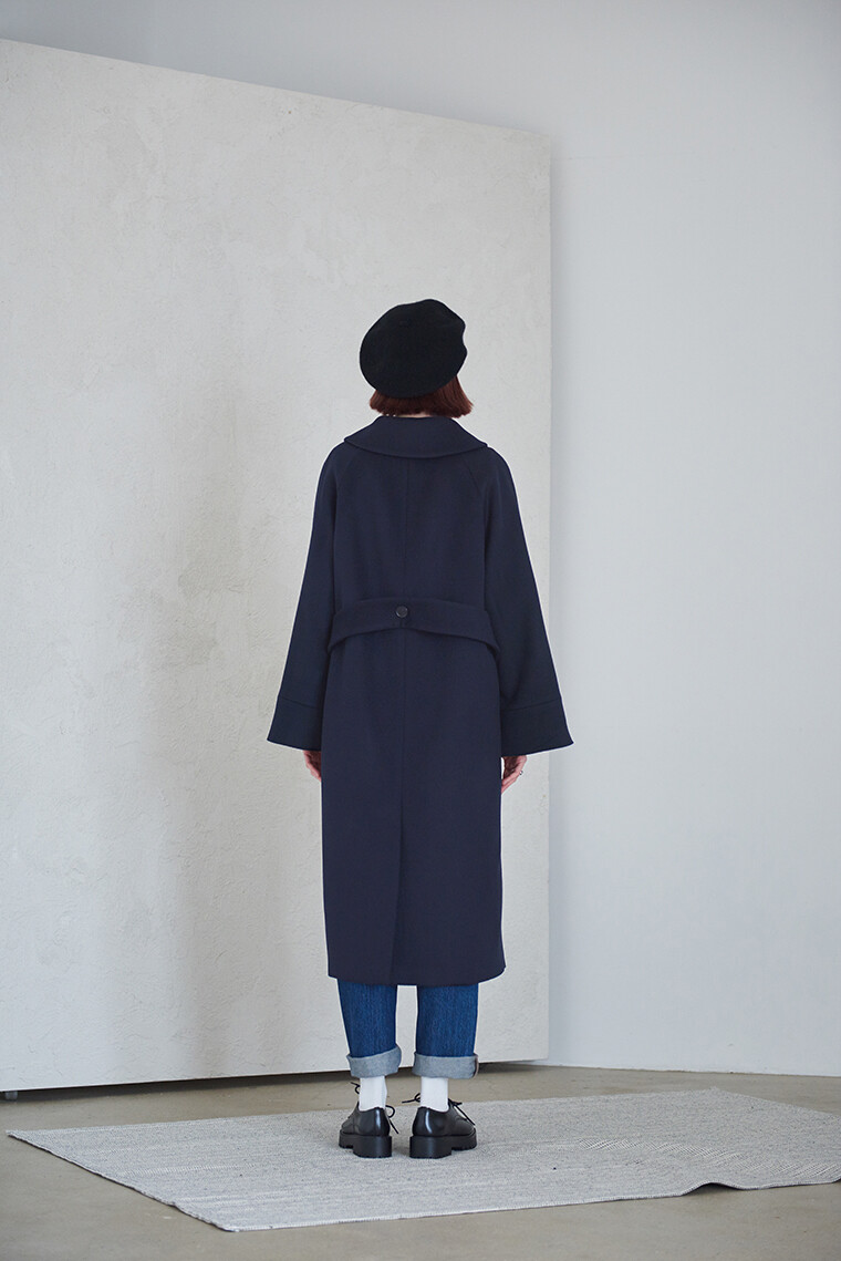 Raglan Sleeve Wool Cashmere Coat - Navy