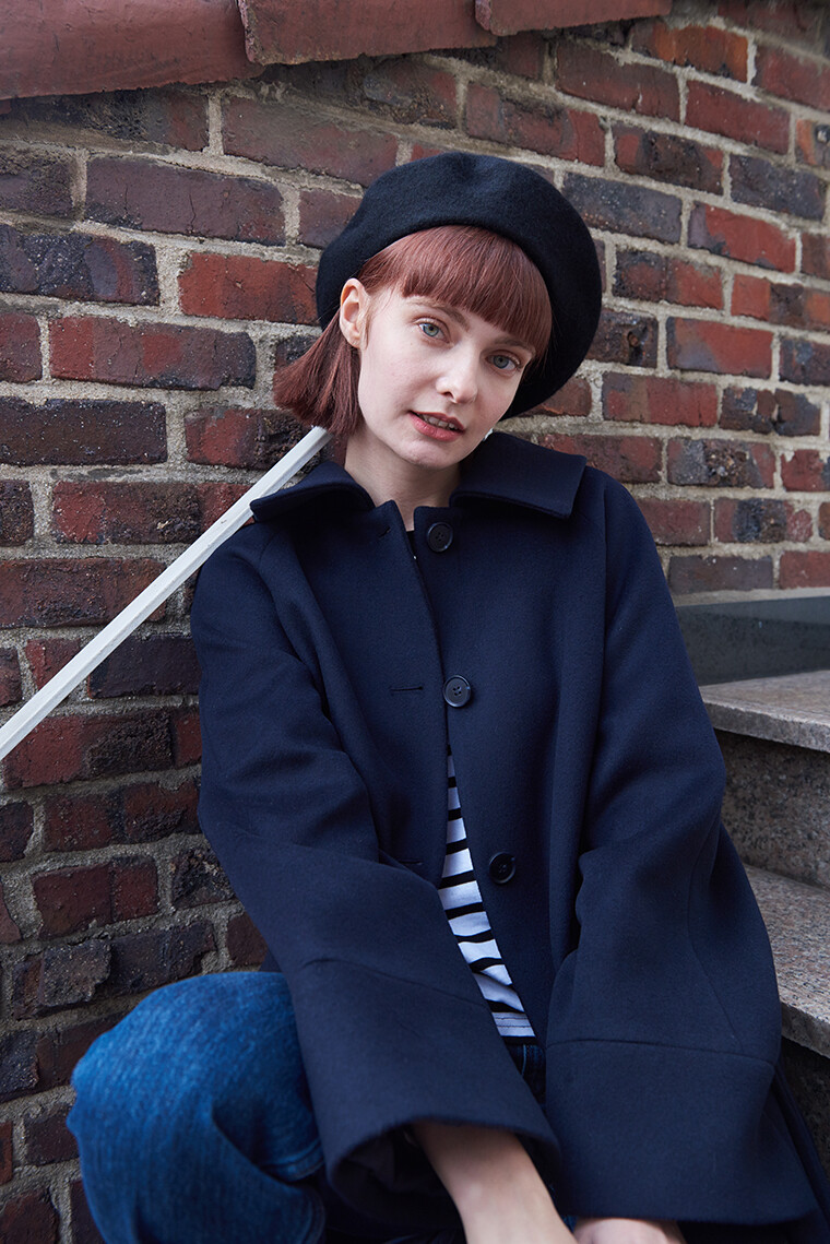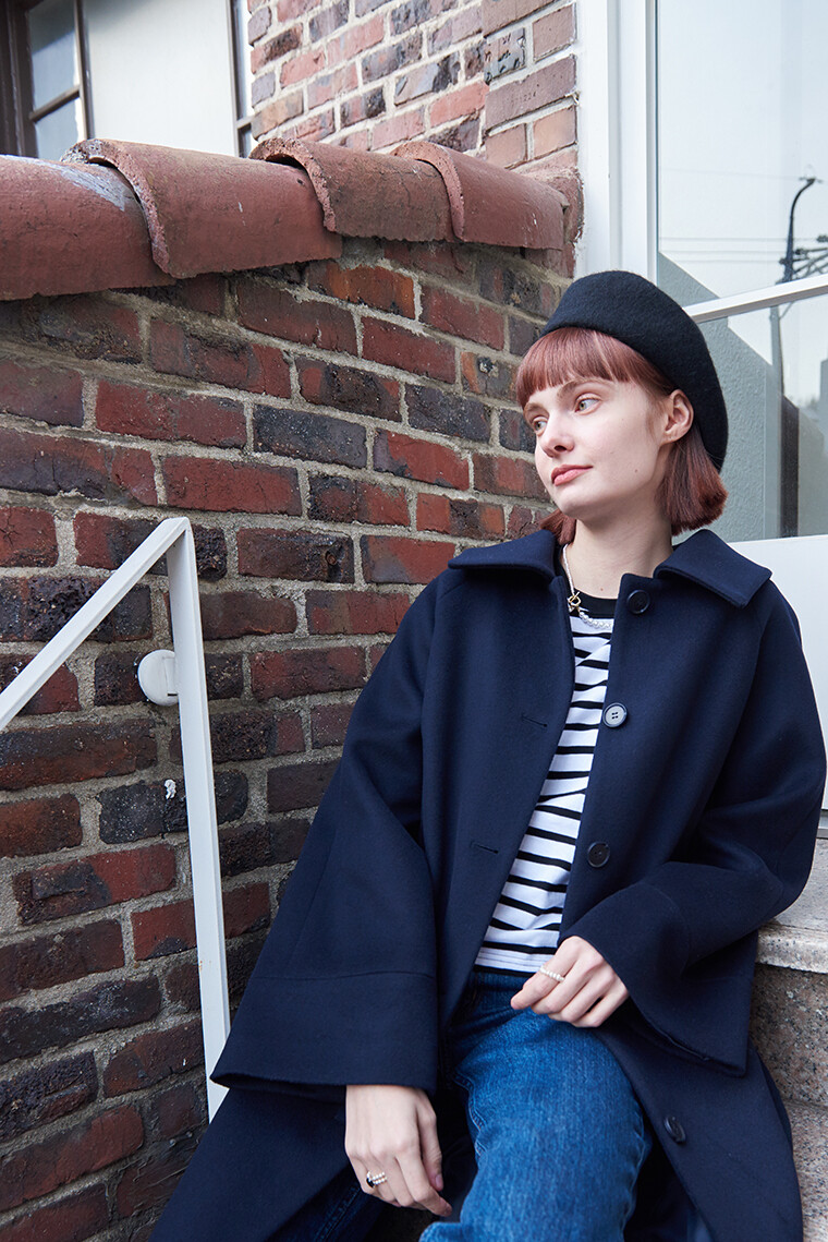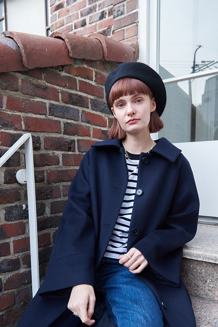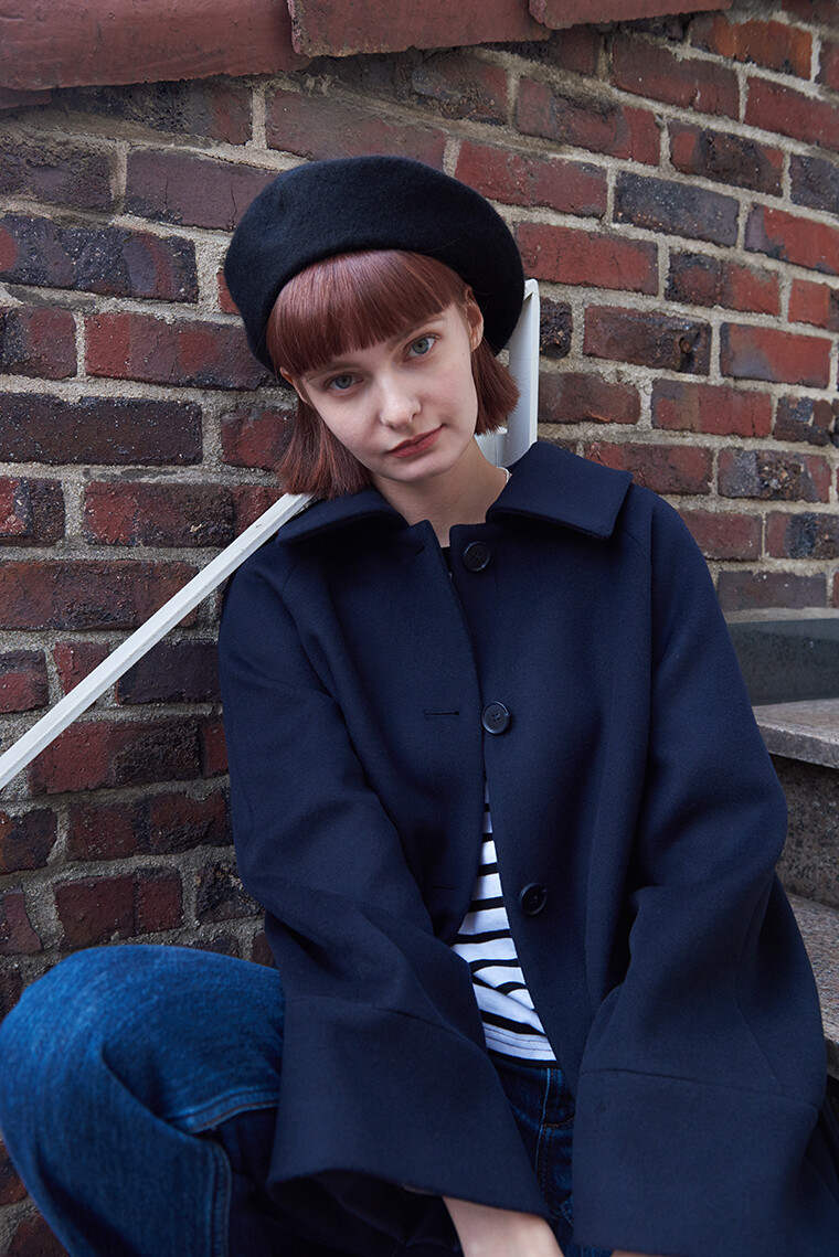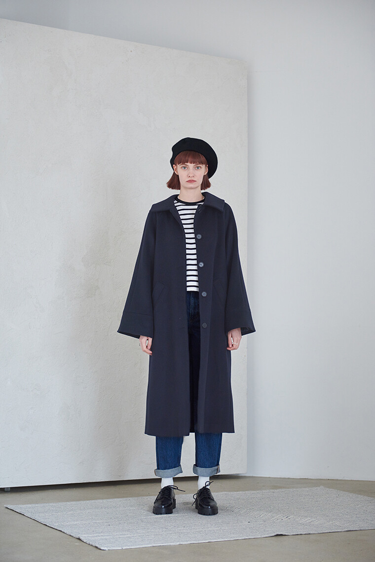 Raglan Sleeve Wool Cashmere Coat - Navy