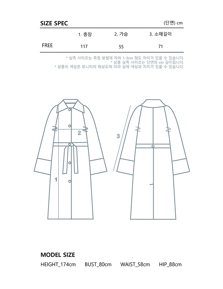 - 사이즈는 측정 방법에 따라 1-3cm 정도 차이가 날 수 있으며, 체형에 따라 핏이 다를 수 있습니다.