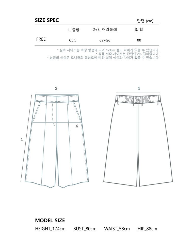 - 사이즈는 측정 방법에 따라 1-3cm 정도 차이가 날 수 있으며, 체형에 따라 핏이 다를 수 있습니다.