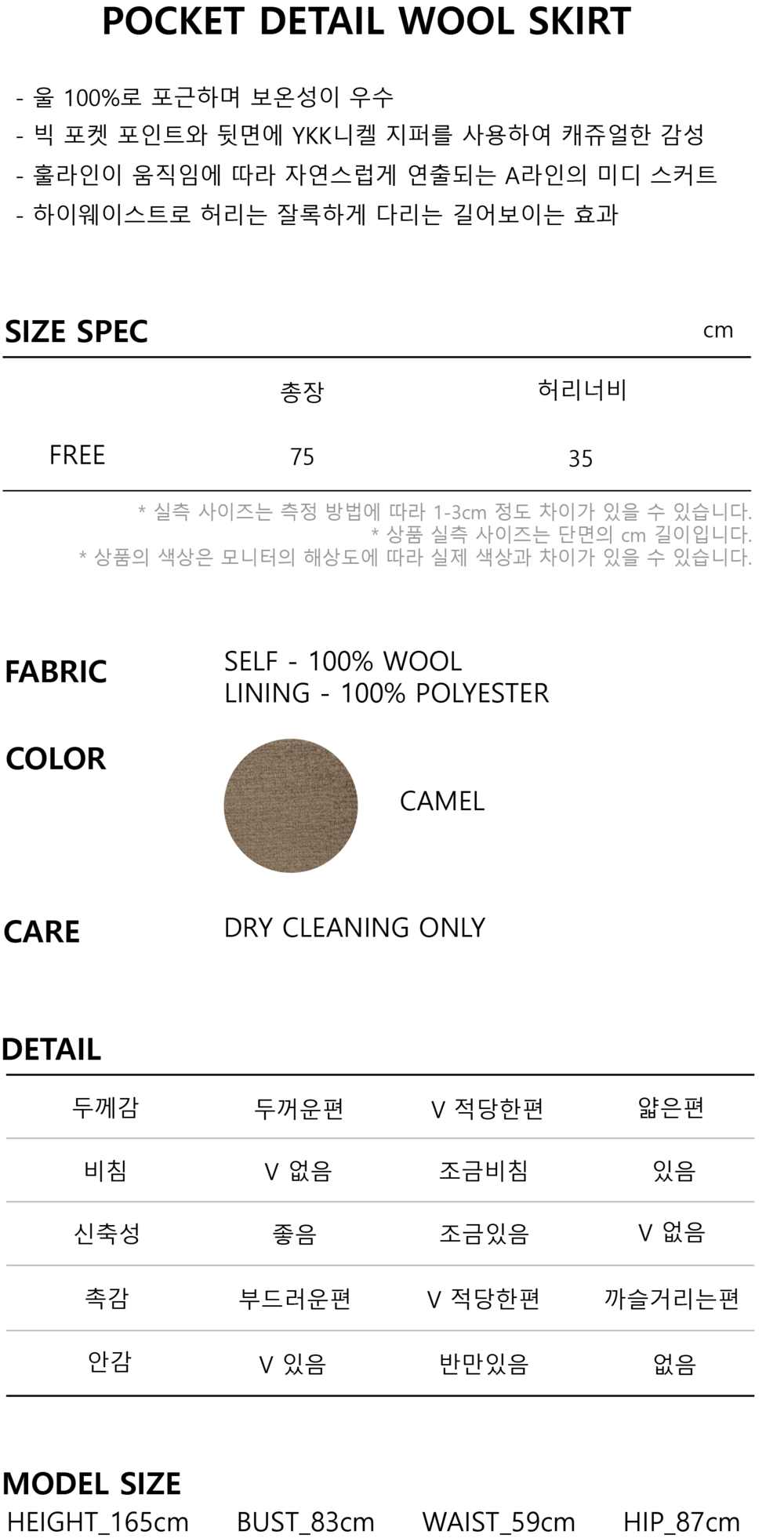 - 사이즈는 측정 방법에 따라 1-3cm 정도 차이가 날 수 있으며, 체형에 따라 핏이 다를 수 있습니다.