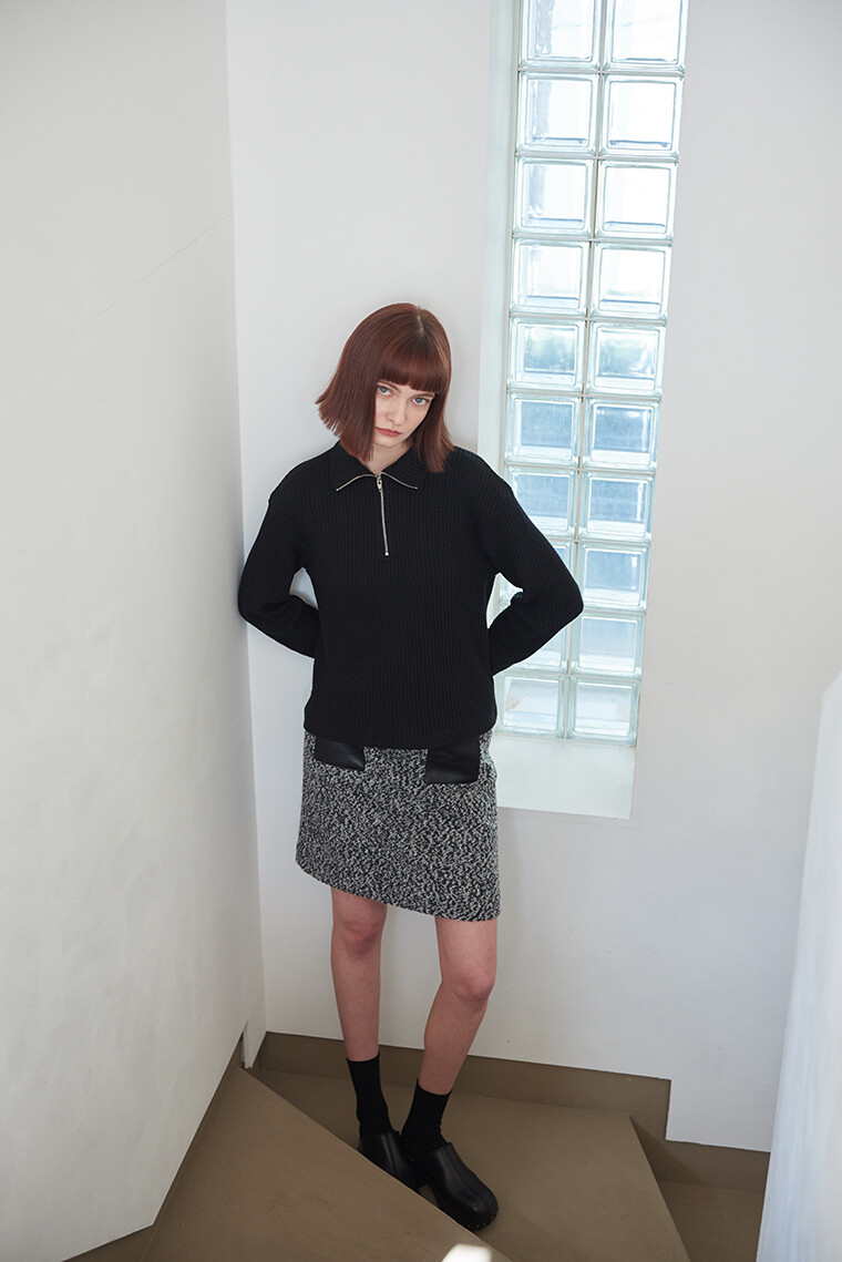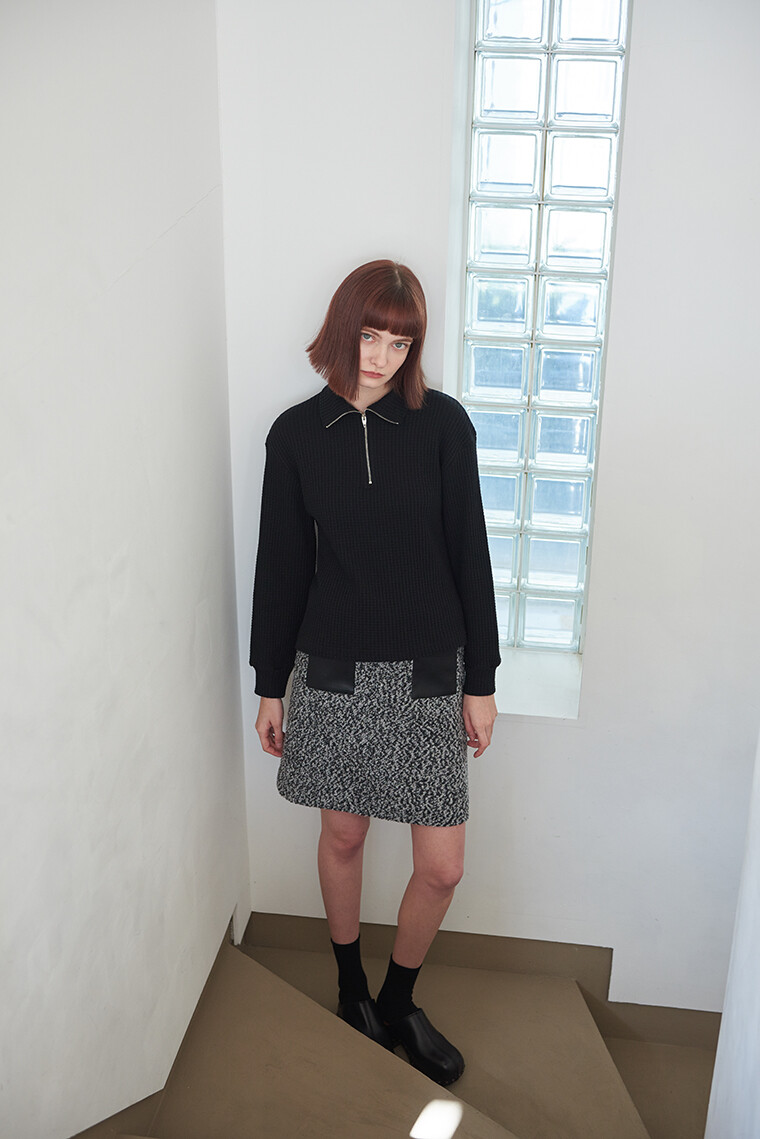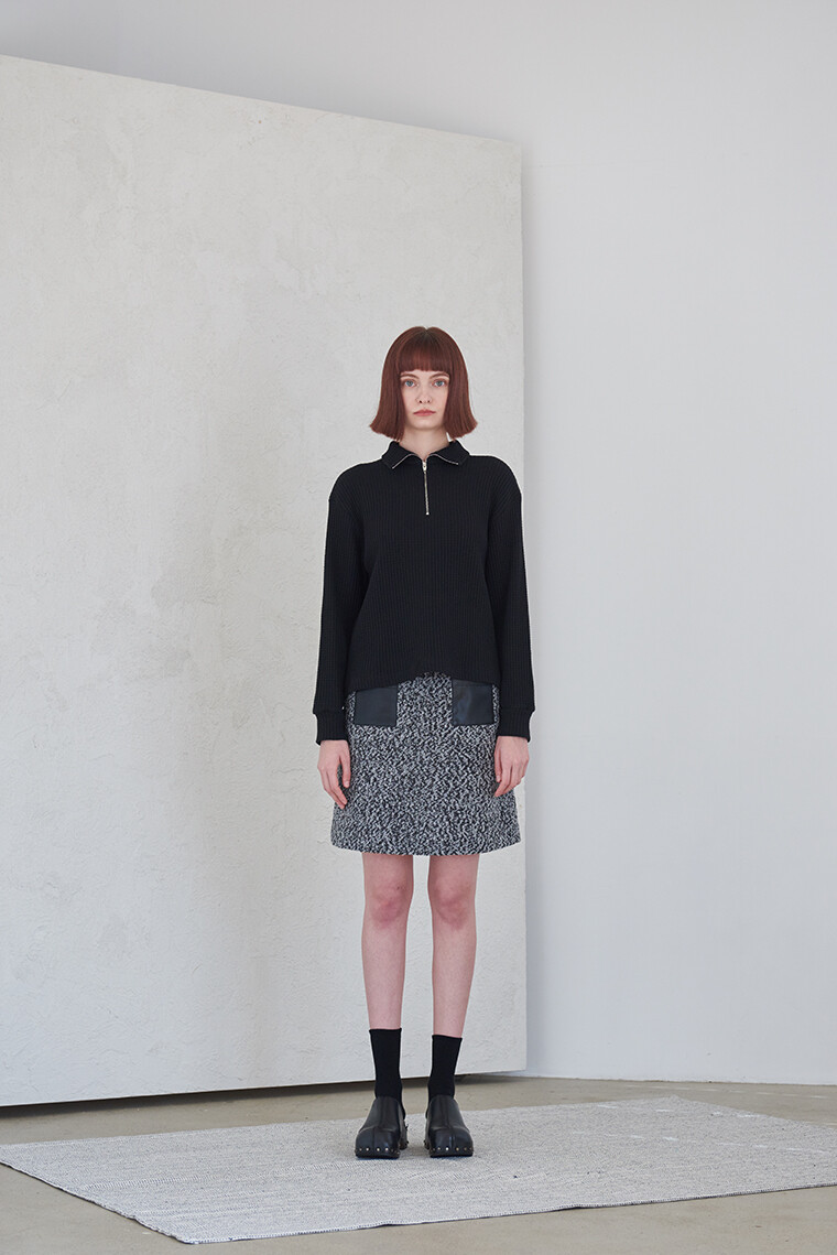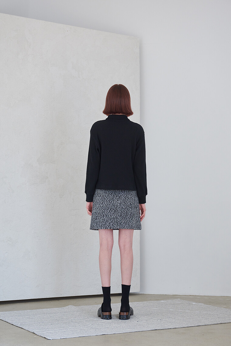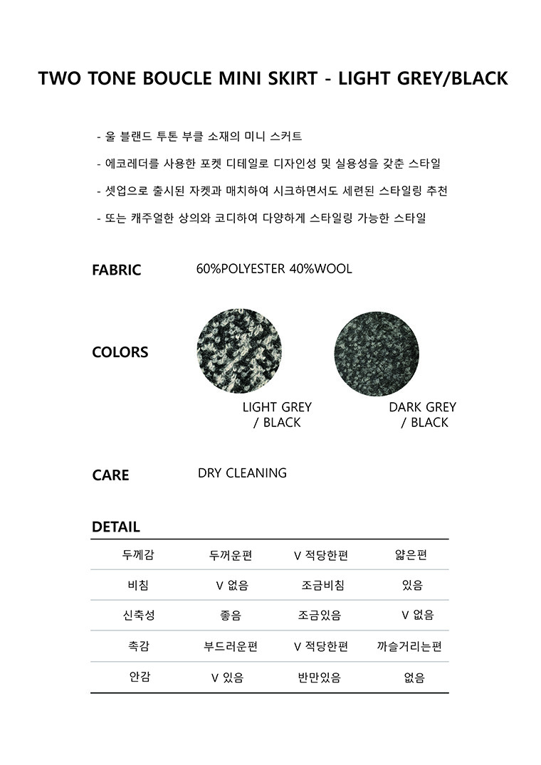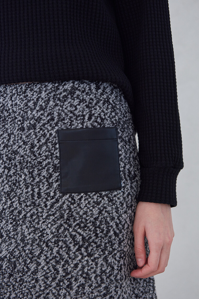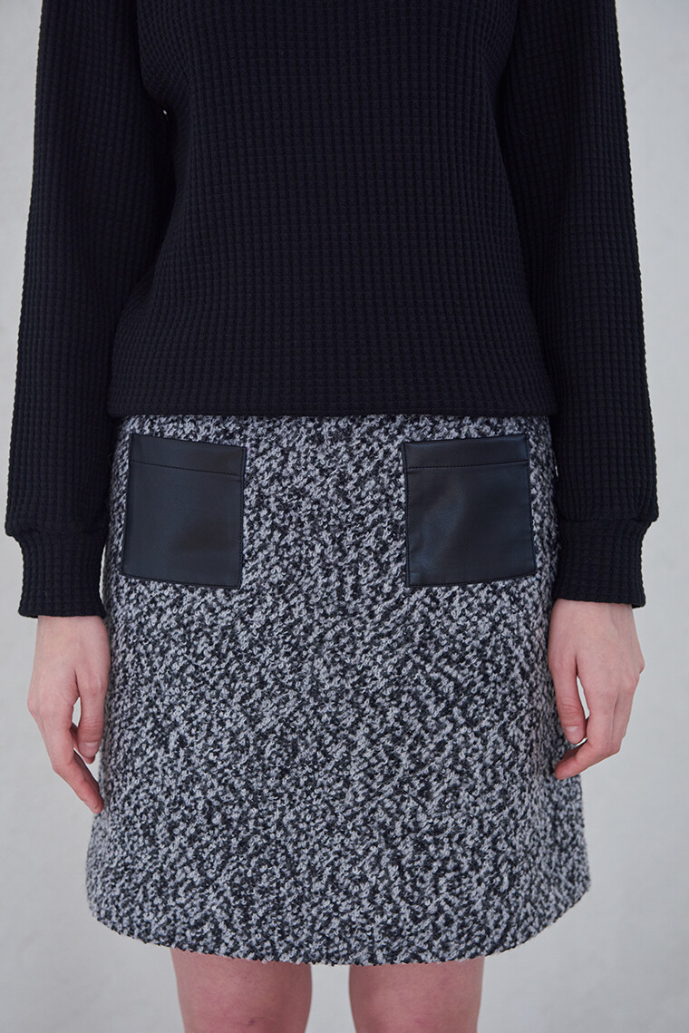 Two Tone Boucle Mini Skirt - Light Grey/Black