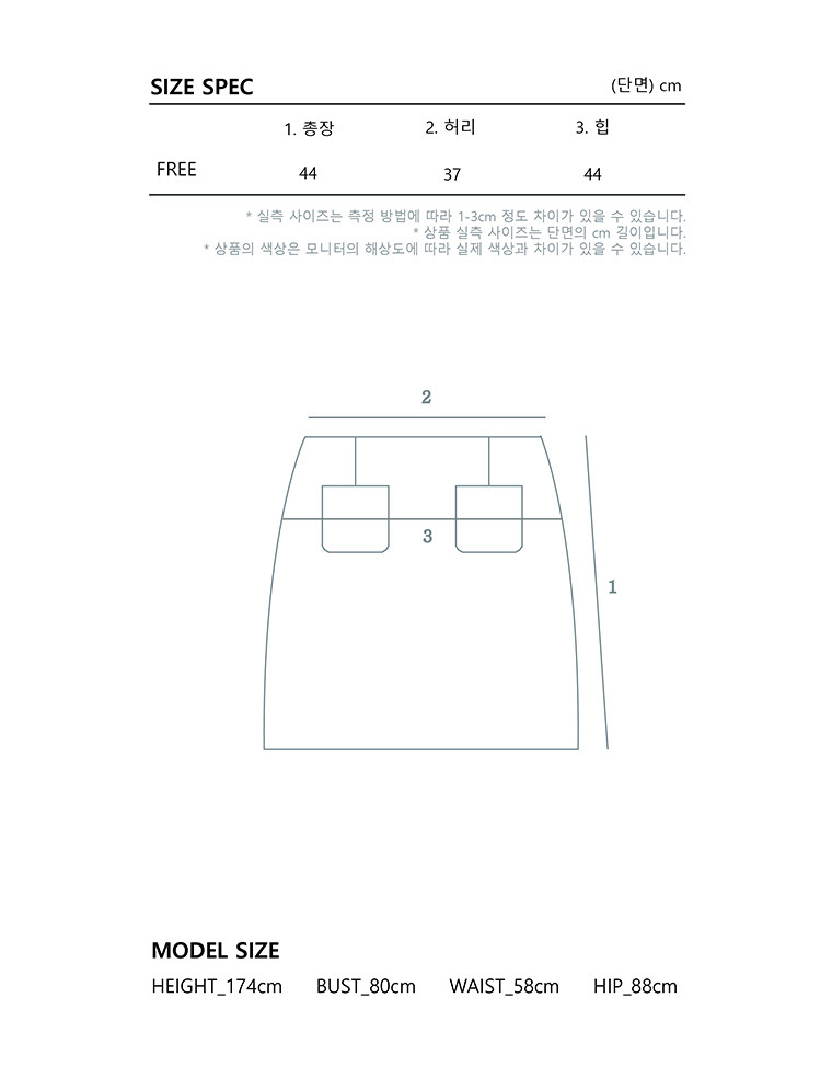 - 사이즈는 측정 방법에 따라 1-3cm 정도 차이가 날 수 있으며, 체형에 따라 핏이 다를 수 있습니다.