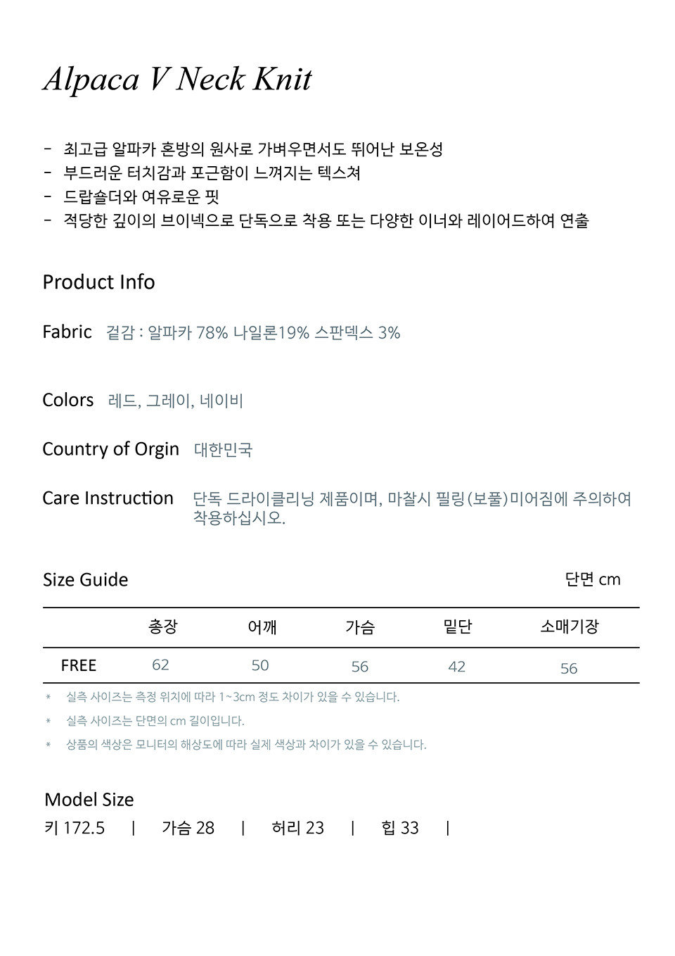- 사이즈는 측정 방법에 따라 1-3cm 정도 차이가 날 수 있으며, 체형에 따라 핏이 다를 수 있습니다.