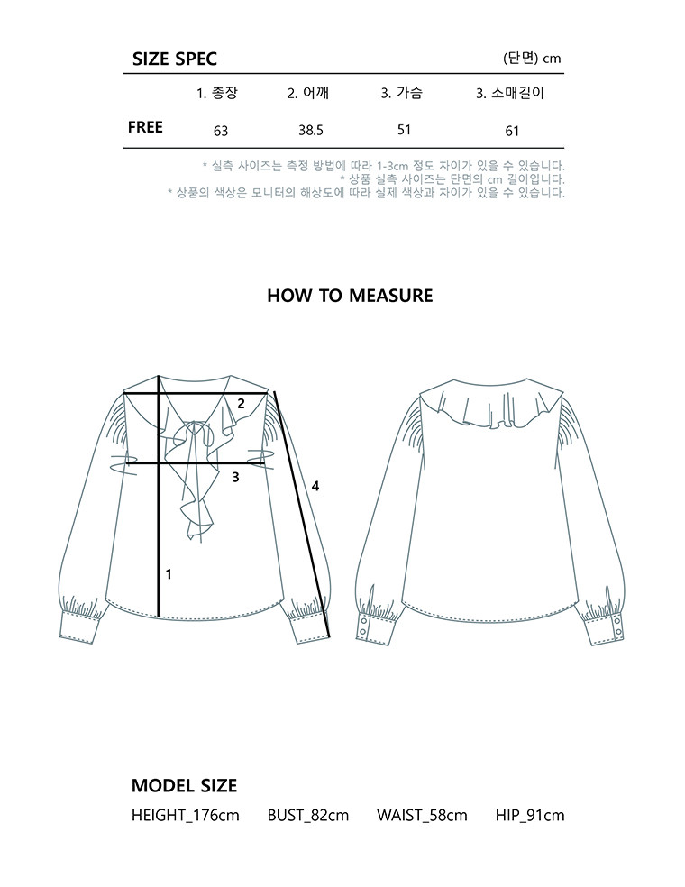 - 사이즈는 측정 방법에 따라 1-3cm 정도 차이가 날 수 있으며, 체형에 따라 핏이 다를 수 있습니다.