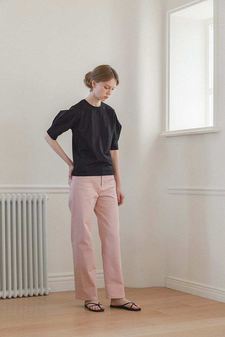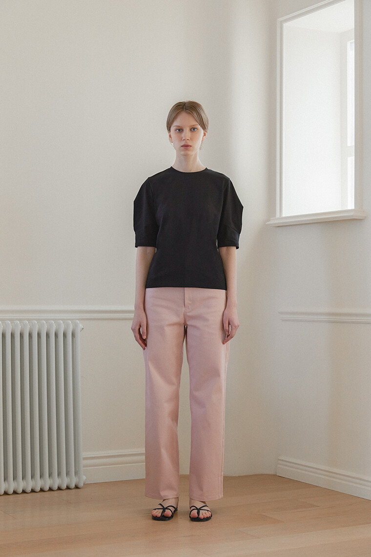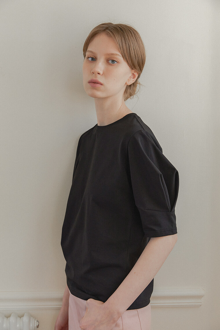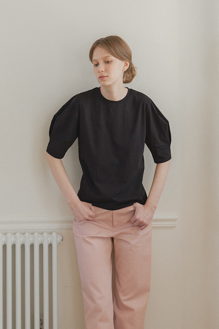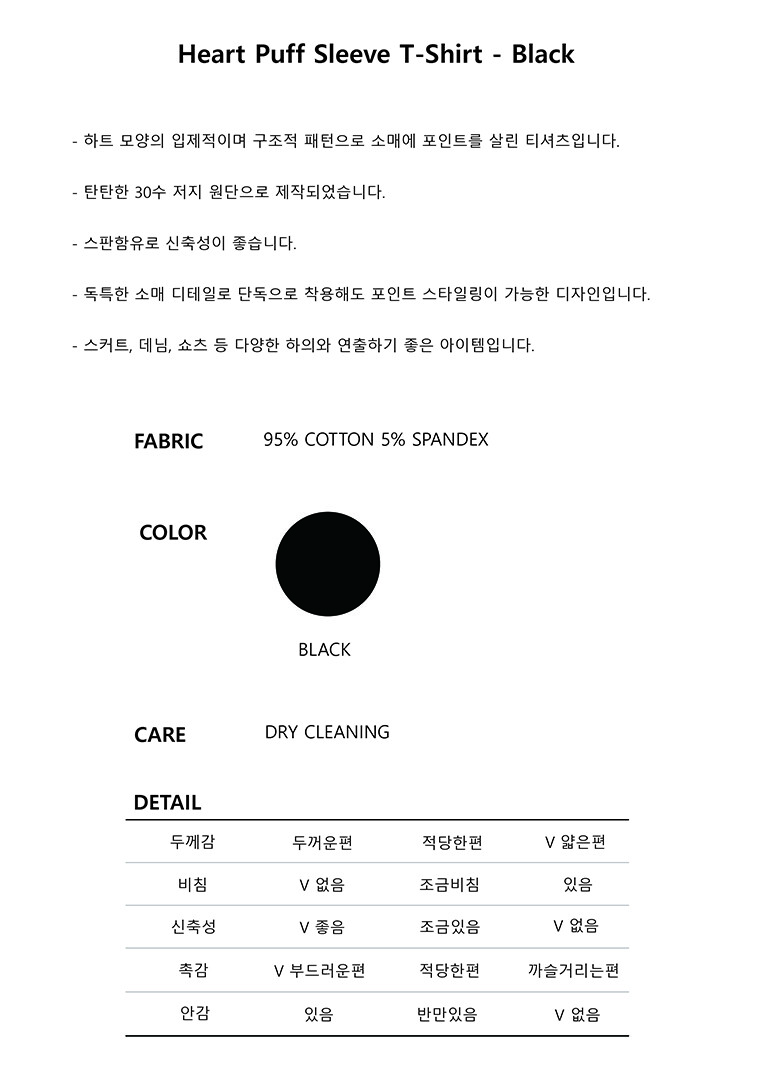 [리오더] Heart Puff Sleeve T-Shirt - Black