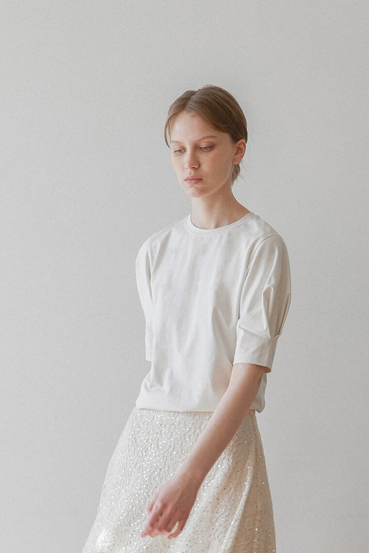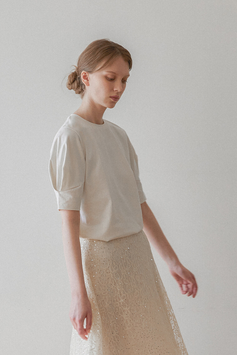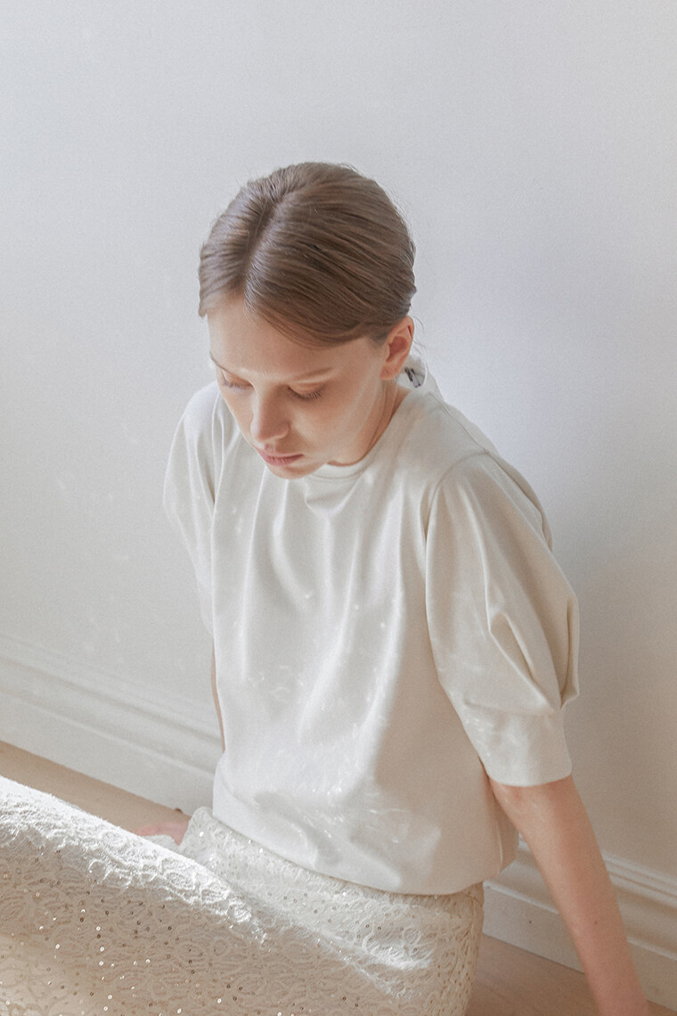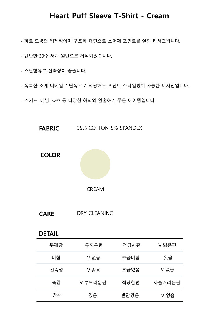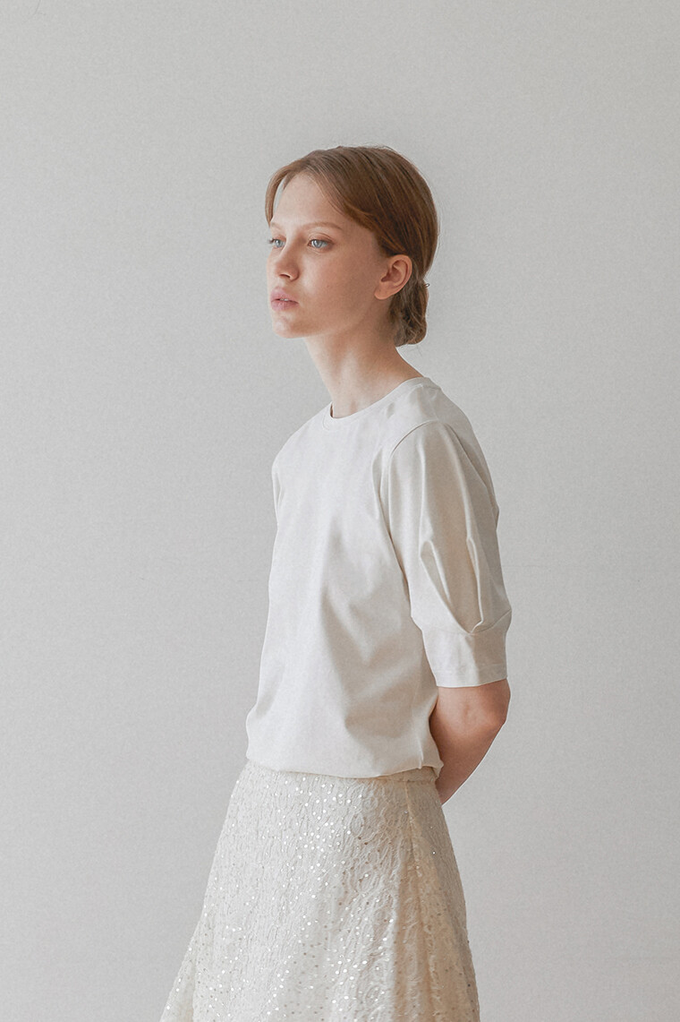 [리오더] Heart Puff Sleeve T-Shirt - Cream