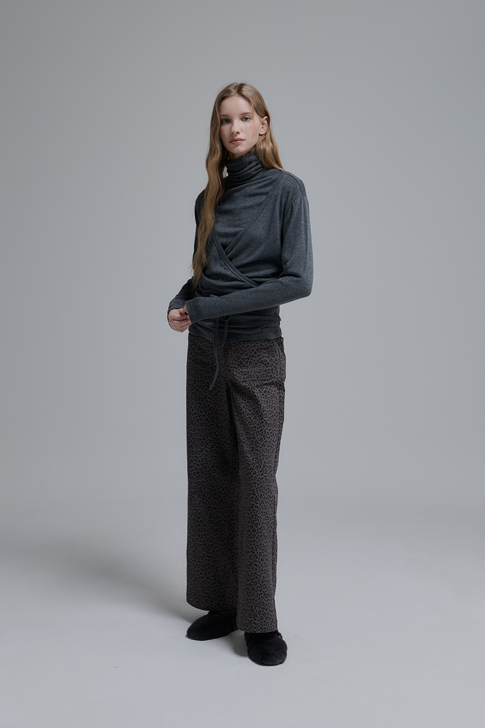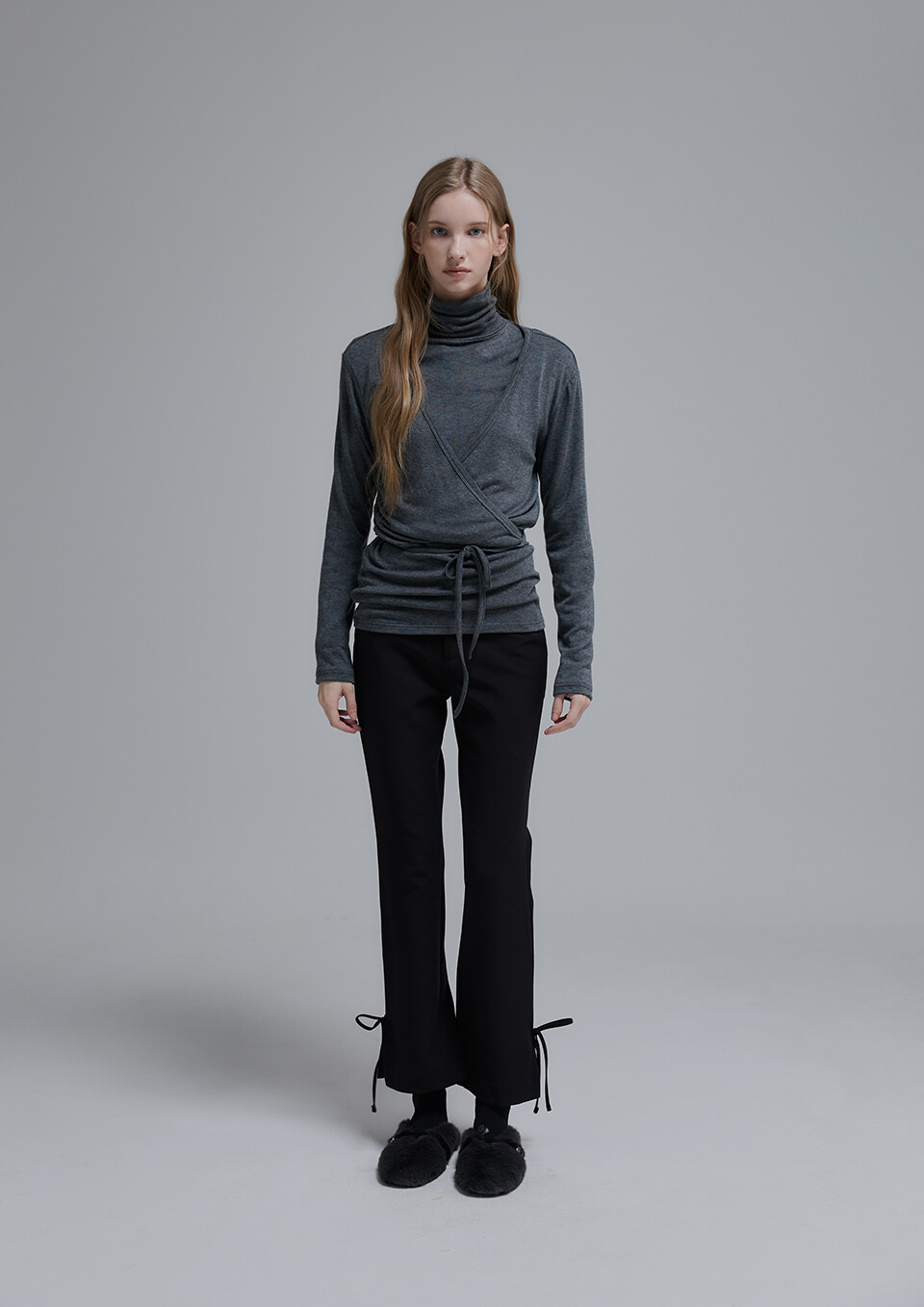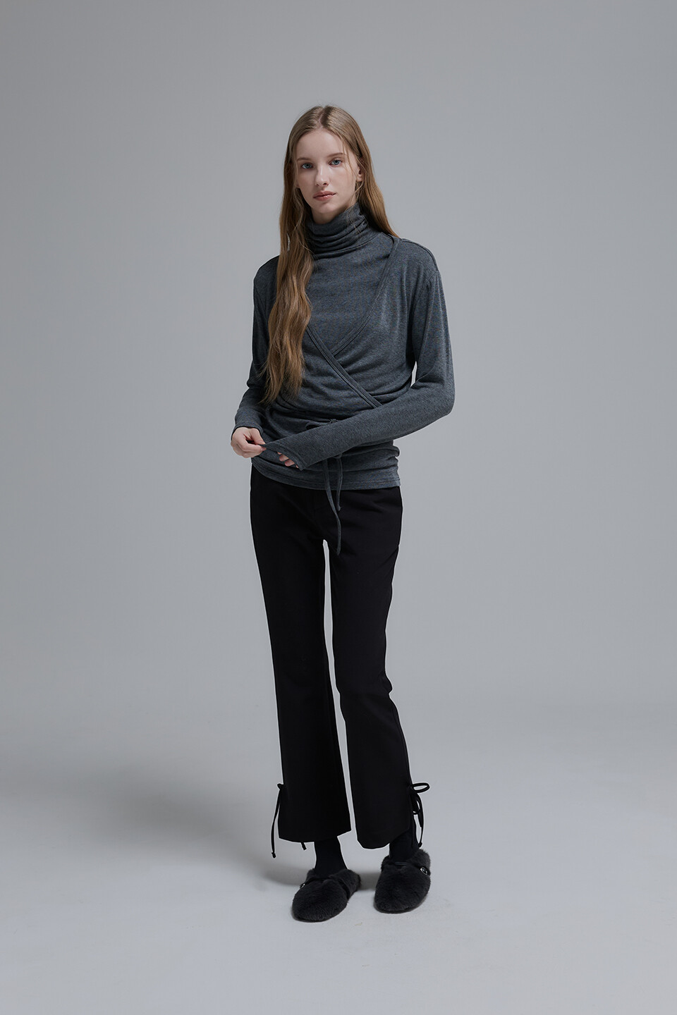 Wool Jersey Turtleneck Top_Charcoal Grey