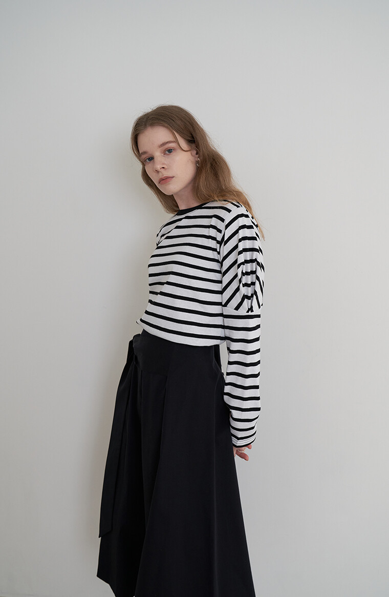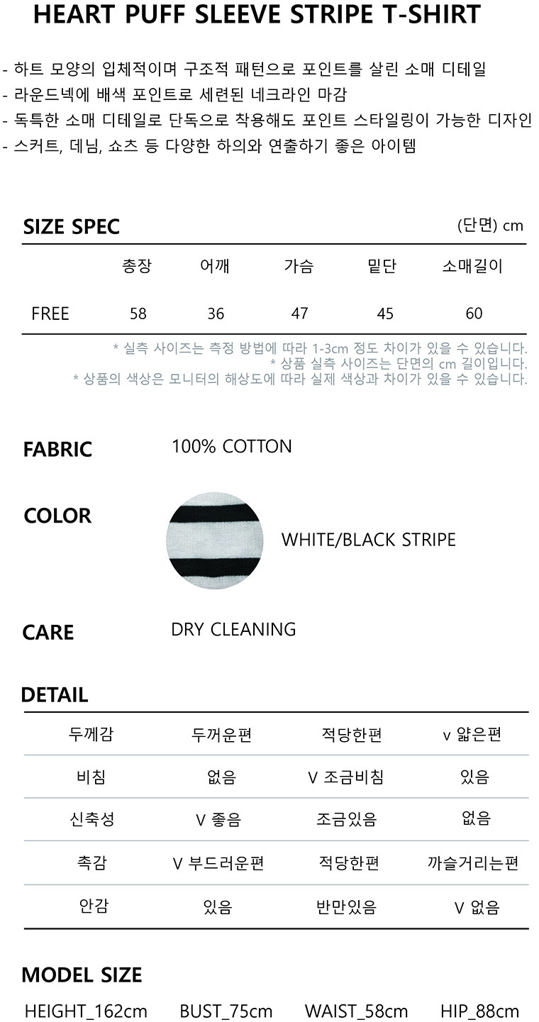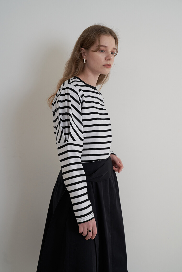 Heart Puff Sleeve Stripe T-Shirt