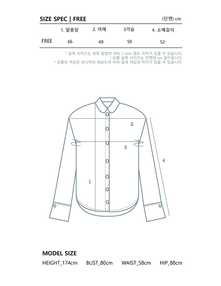 - 사이즈는 측정 방법에 따라 1-3cm 정도 차이가 날 수 있으며, 체형에 따라 핏이 다를 수 있습니다.
