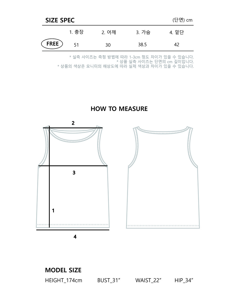 - 사이즈는 측정 방법에 따라 1-3cm 정도 차이가 날 수 있으며, 체형에 따라 핏이 다를 수 있습니다.