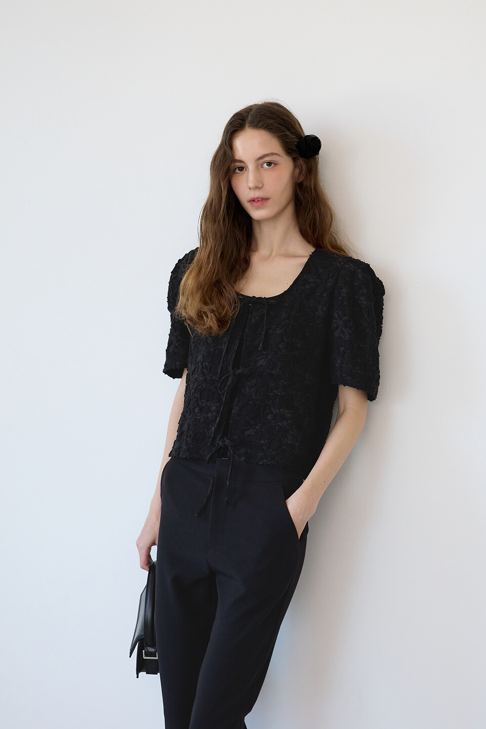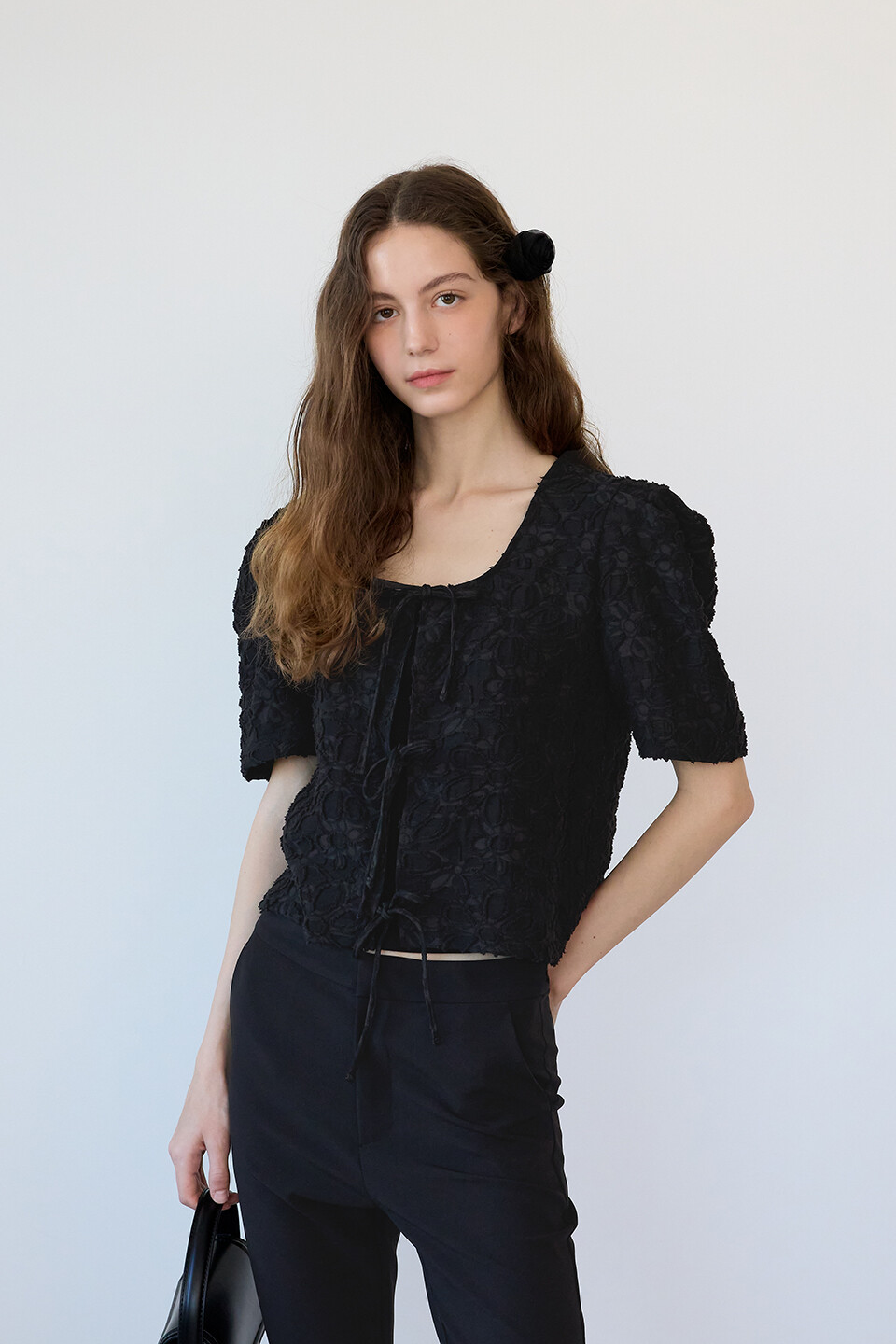 [리오더] Bloom Ribbon Top - Black